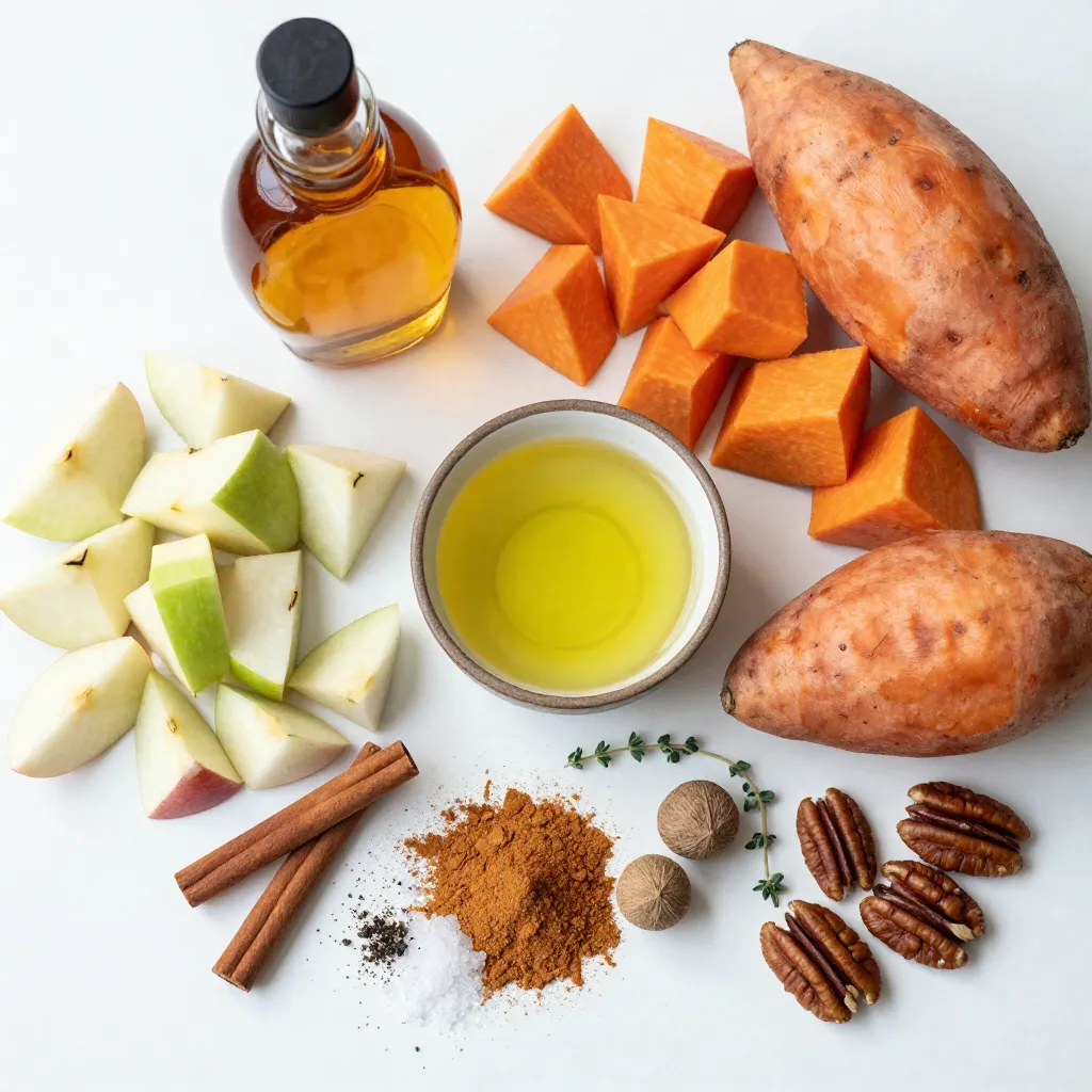 Start by getting your oven hot. This helps cook the sweet potatoes and apples evenly. While the oven heats, prepare your main ingredients. Peel and cube the sweet potatoes into bite-sized pieces. Then, take your apples, core them, and dice them up. I love using Honeycrisp or Granny Smith apples for their crisp texture and sweet-tart flavor.
