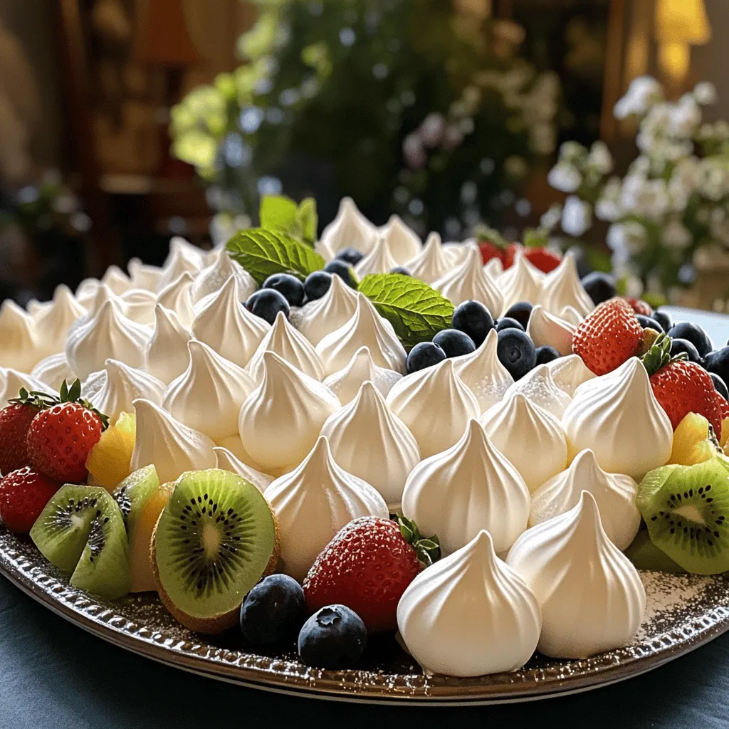 Think about fun fruit pairings for your meringues. Strawberries and kiwi work well together. You can also mix blueberries and raspberries for a colorful treat. Seasonal fruits are great too. In summer, use peaches or cherries. In fall, try apples or pears. They all add different flavors and colors.