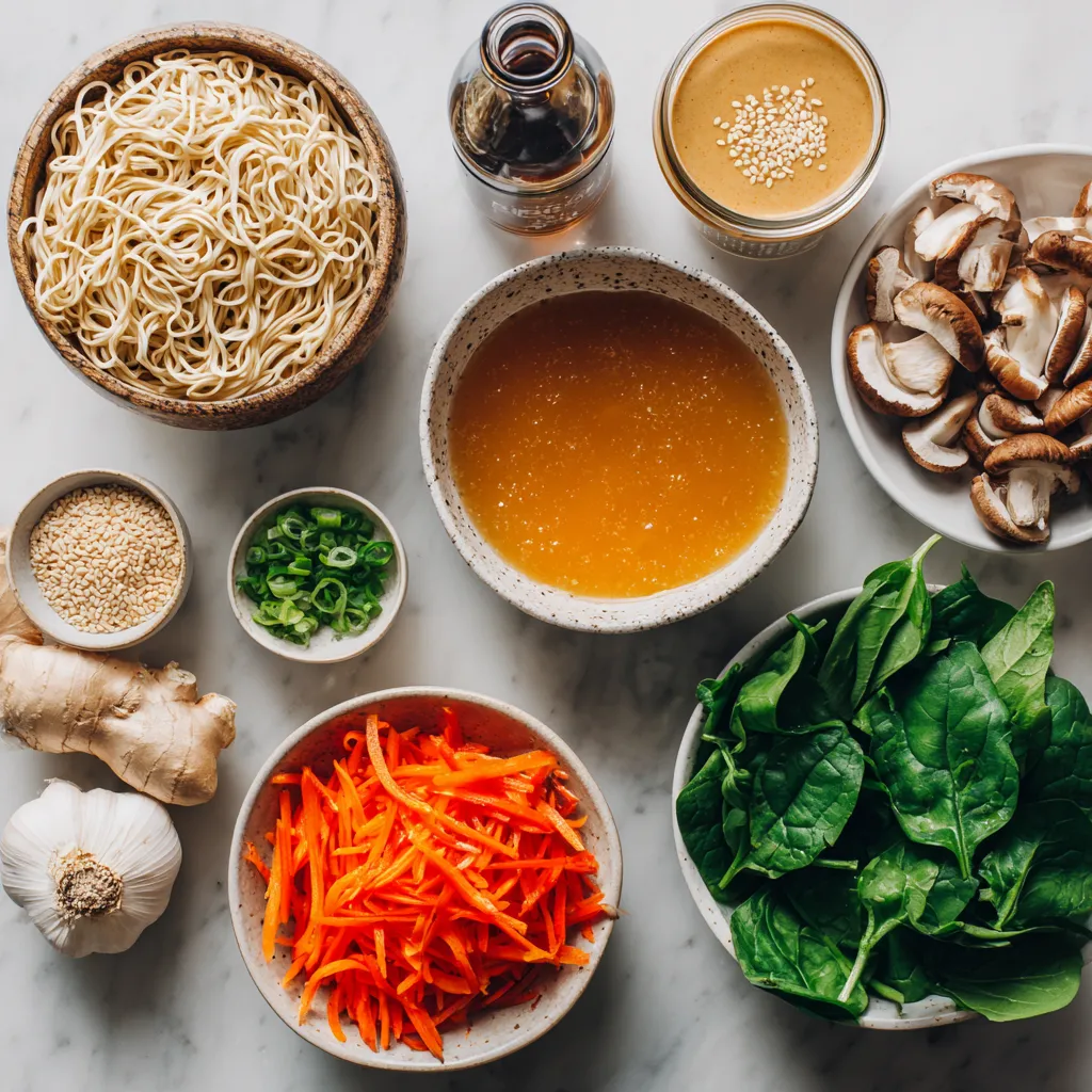 Each of these ingredients adds depth to your dish. Vegetable broth forms the base, while miso paste and ginger give it a rich flavor. The garlic brings warmth, and soy sauce adds a touch of saltiness.