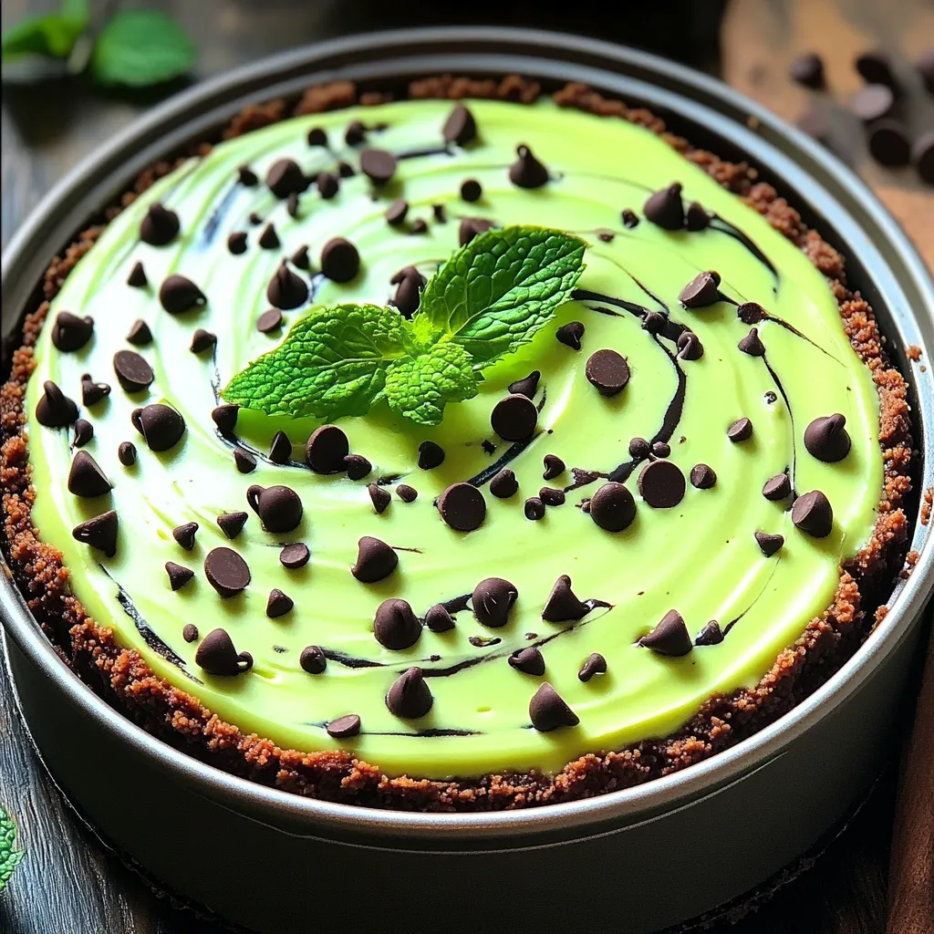 Each ingredient plays a role in making this dessert creamy, rich, and refreshing. The chocolate cookie crumbs serve as a tasty crust, while the cream cheese adds a smooth texture. The whipped cream lightens the filling, making it fluffy. The mini chocolate chips add delightful bursts of chocolate in every bite. Feel free to adjust the mint flavor with the peppermint extract to suit your taste. If you want a fun color, use green food coloring to enhance the minty look. Lastly, garnish with fresh mint leaves for a pop of color and extra freshness.