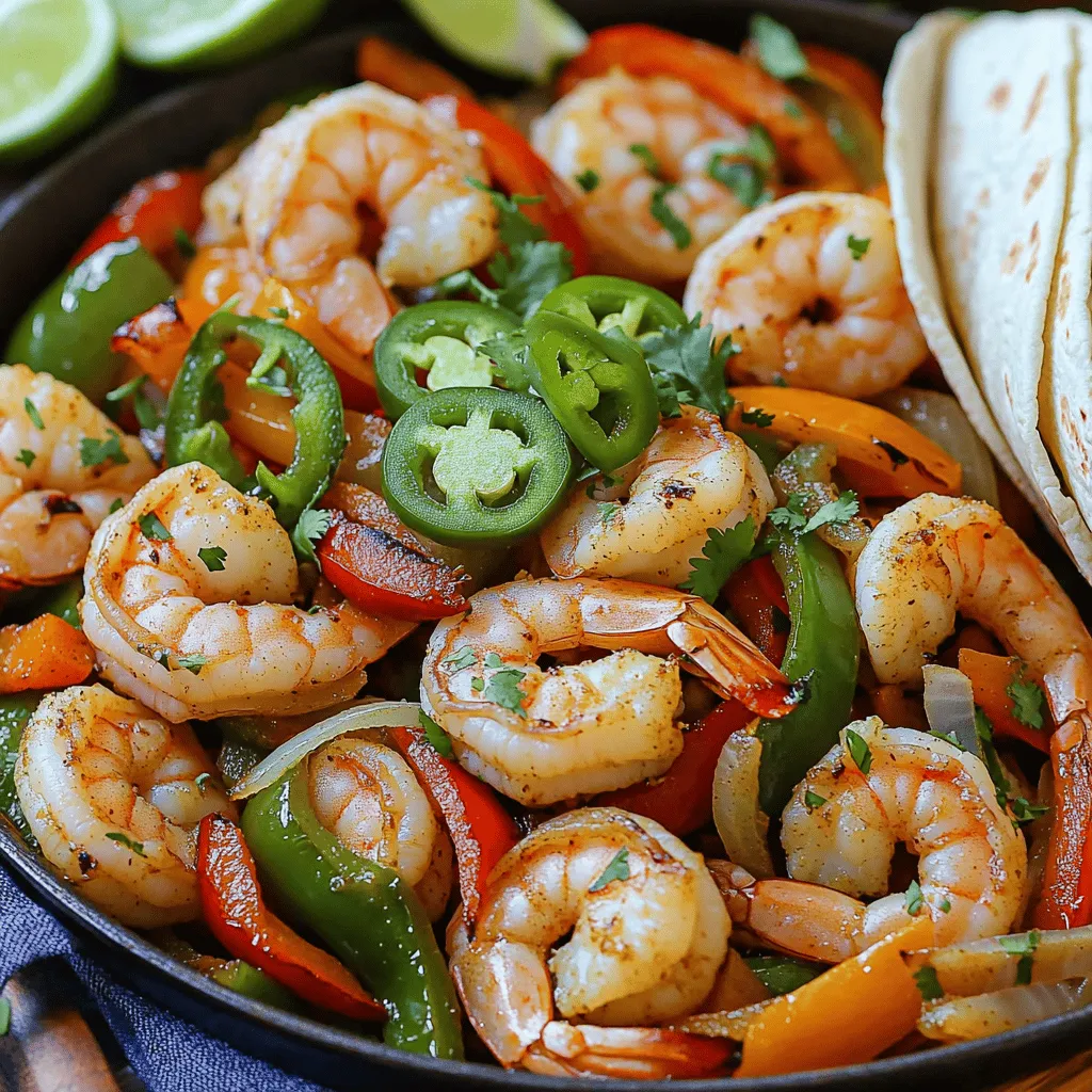 To make One Pan Jalapeño Lime Shrimp Fajitas, you will need: - 1 lb large shrimp, peeled and deveined - 2 tablespoons olive oil - 1 large red bell pepper, sliced - 1 large green bell pepper, sliced - 1 medium onion, sliced - 2 jalapeños, sliced (remove seeds for less heat) - 4 cloves garlic, minced - Juice of 2 limes - Zest of 1 lime - 1 teaspoon ground cumin - 1 teaspoon smoked paprika - Salt and pepper to taste To enhance your dish, consider adding: - Fresh cilantro, chopped - Corn or flour tortillas You can mix things up with different ingredients. Here are some ideas: - Swap the bell peppers for zucchini or mushrooms for a different taste. - Use shrimp alternatives like chicken or tofu for a different protein. - If you lack smoked paprika, regular paprika or chili powder works as a substitute. These options keep the dish fresh and exciting while catering to your taste or what you have on hand. Start by heating your skillet over medium-high heat. Add 1 tablespoon of olive oil. Let the oil get hot. This helps cook the shrimp and veggies well. Next, add sliced onions, red and green bell peppers, and jalapeños to the pan. Sprinkle some salt over them. Sauté for about 5 to 7 minutes. You want the veggies to soften and get a bit charred. Once done, take them out of the pan and set them aside. In the same pan, pour in the last tablespoon of olive oil. Then, add minced garlic. Cook for about 30 seconds. The garlic should smell great! Then, toss in the shrimp. Add cumin, smoked paprika, salt, and pepper. Cook the shrimp for about 3 to 4 minutes. They should turn pink and opaque. Once the shrimp are ready, put the cooked veggies back in the pan. Squeeze the juice of 2 limes over the mix. Don’t forget the lime zest! Toss everything together for another 1 to 2 minutes. This step is key to blending the flavors. Take the pan off the heat. Garnish with chopped cilantro. Serve warm with corn or flour tortillas on the side. Enjoy your One Pan Jalapeño Lime Shrimp Fajitas! To make great fajitas, use fresh ingredients. Fresh shrimp adds a nice taste. Choose ripe bell peppers for color and crunch. Slice them thinly for even cooking. Cook the veggies first until soft, then remove them. This keeps them from overcooking when you add the shrimp. Sauté the shrimp quickly. They cook fast, about 3-4 minutes. They should turn pink and opaque. Avoid crowding the pan. This helps them sear nicely. To enhance your fajitas, serve them with warm tortillas. You can use corn or flour. Top with fresh cilantro for brightness. Add a squeeze of lime to boost flavor. For extra heat, offer sliced jalapeños on the side. You can also serve with avocado slices or a dollop of sour cream. A side of rice or beans pairs well too. These sides add heartiness to your meal. To save time, prep your veggies ahead. Slice the onions and bell peppers the night before. Store them in the fridge for quick access. You can also peel and devein shrimp ahead of time. Store them in a sealed bag. For extra flavor, marinate the shrimp with lime juice and spices for 30 minutes. This makes cooking faster and adds taste. Having everything ready cuts down on cooking time. {{image_2}} You can control the heat in this dish. To make it spicy, keep the seeds in the jalapeños. If you prefer mild, remove the seeds and use fewer jalapeños. You can also adjust the seasoning. Use less cumin and smoked paprika for a gentler taste. This way, you can enjoy the flavors without too much spice. Shrimp is great, but you can change it up. Try chicken or beef instead. Just cut the meat into thin strips and cook it the same way. If you want a plant-based option, use firm tofu or tempeh. They soak up flavors well and add a nice texture. Each protein gives a new twist to the dish. Add extra veggies for more color and flavor. You can use zucchini, mushrooms, or corn. Just slice them thin and toss them in with the other veggies. They will cook quickly and add great taste. This makes your fajitas more colorful and fun. Plus, it boosts nutrition and keeps things interesting. To keep your One Pan Jalapeño Lime Shrimp Fajitas fresh, store leftovers in an airtight container. Let the dish cool down before sealing it. Place it in the fridge within two hours of cooking. This helps avoid bacteria growth and keeps the flavors intact. If you want to save some for later, freezing works well. First, let the fajitas cool completely. Then, pack them tightly in a freezer-safe bag or container. Remove as much air as possible before sealing. When you want to eat them, thaw in the fridge overnight. Reheat gently in a pan over medium heat until warmed through. In the fridge, your fajitas will stay fresh for about 3 days. For the freezer, they can last up to 3 months. After this time, they may lose flavor and texture. Always check for any signs of spoilage before eating. Yes, you can prepare One Pan Jalapeño Lime Shrimp Fajitas ahead of time. To meal prep, cook the shrimp and veggies, then store them in airtight containers. Keep the tortillas separate. When you’re ready to eat, warm the shrimp and veggies in a pan. This keeps the flavors fresh. You can also microwave them if you’re in a hurry. Just be careful not to overcook the shrimp during reheating. You have many options for sides. Here are some ideas: - Mexican rice - Black beans - Avocado slices - Fresh salsa - Grilled corn - A light salad with lime dressing These sides pair well and add more flavor to your meal. You can mix and match based on your taste. To check if shrimp is cooked, look for a few signs: - The shrimp should turn pink. - It should be opaque, not clear. - The texture should feel firm, not mushy. Cooking shrimp takes just a few minutes. Remove it from heat as soon as it’s done. This keeps it tender and juicy. This post covered everything you need to make One Pan Jalapeño Lime Shrimp Fajitas. We looked at key ingredients, tips for perfect cooking, and ways to add variety. Preparing this dish can be quick an