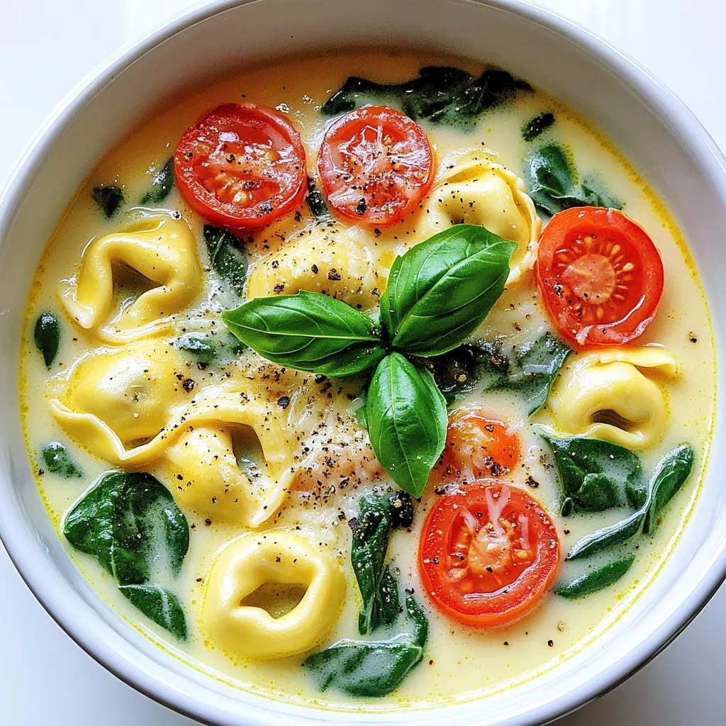 - 2 tablespoons olive oil - 4 cloves garlic, minced - 1 medium onion, diced - 3 cups vegetable broth - 2 cups whole milk - 8 ounces cheese tortellini (fresh or frozen) - 1 cup baby spinach, chopped - 1 cup cherry tomatoes, halved - 1 teaspoon dried basil - 1 teaspoon dried oregano - Salt and pepper to taste - Grated Parmesan cheese for serving - Fresh basil leaves for garnish - Red pepper flakes for heat - A squeeze of lemon juice for brightness - Bacon or pancetta for a smoky touch - Fresh herbs like thyme or parsley for extra freshness - Large pot or Dutch oven for even heat - Wooden spoon for stirring - Measuring cups and spoons for accuracy - Knife and cutting board for prep - Ladle for serving soup Each ingredient adds its own touch to this creamy garlic tortellini soup. The olive oil brings richness, while the garlic and onion create a fragrant base. The vegetable broth and whole milk combine for a creamy texture. Tortellini gives heartiness, and spinach adds color. The cherry tomatoes contribute a burst of flavor. Don't skip the Parmesan; it elevates the soup! Using these tools helps make your cooking smooth. A large pot prevents spills and allows for easy stirring. Measuring tools ensure you get just the right amount. A good knife makes prep fast and safe. Enjoy the process, and let your kitchen fill with delightful aromas! Start by gathering all your ingredients. You need: - 2 tablespoons olive oil - 4 cloves garlic, minced - 1 medium onion, diced - 3 cups vegetable broth - 2 cups whole milk - 8 ounces cheese tortellini (fresh or frozen) - 1 cup baby spinach, chopped - 1 cup cherry tomatoes, halved - 1 teaspoon dried basil - 1 teaspoon dried oregano - Salt and pepper to taste - Grated Parmesan cheese for serving - Fresh basil leaves for garnish Chop the onion and mince the garlic. This step builds flavor in your soup. Heat the olive oil in a large pot over medium heat. Add the minced garlic and diced onion. Sauté them for about 3-4 minutes. You want the onion to be soft and clear. Next, pour in the vegetable broth and whole milk. Stir well. Increase the heat and wait for the mix to boil gently. Once boiling, add the cheese tortellini. Lower the heat to a simmer. Cook the tortellini for 5-7 minutes. Stir often to keep them from sticking. When the tortellini is tender, stir in the chopped spinach, halved cherry tomatoes, dried basil, and oregano. Cook for another 2-3 minutes. The spinach should wilt, and the tomatoes will soften. Finally, season the soup with salt and pepper to taste. Always stir well when adding new ingredients. This helps blend the flavors. If you want a thicker soup, let it simmer a bit longer. The liquid will reduce, making it creamier. For extra flavor, add more garlic or herbs. Fresh herbs can also brighten the soup. Don’t forget to top with grated Parmesan and fresh basil before serving. This adds a nice finish to your dish. Enjoy your creamy garlic tortellini soup! To achieve that rich, creamy texture, use whole milk. It gives the soup a nice body. Adding the milk slowly helps it blend well. Stir often to avoid lumps. You can also add a splash of cream for extra richness. If you want it thicker, mix a bit of cornstarch with cold water. Stir this mix into the soup until it thickens. Start with a pinch of salt and pepper. Taste as you go. If you want more heat, add a pinch of red pepper flakes. You can also use fresh ground black pepper for a stronger kick. Remember, you can always add more, but you can't take it out. Balance is key, so find what feels right for you. Always pick fresh tortellini for the best flavor. Check local markets for fresh options. Frozen tortellini works too, just make sure it’s good quality. Look for low-sodium vegetable broth to control salt levels. Fresh baby spinach adds color and nutrition. Buy ripe cherry tomatoes for the sweetest taste. Finally, choose a good Parmesan cheese; it makes a big difference. {{image_2}} You can easily make this soup vegetarian or vegan. For a vegetarian version, just use vegetable broth and keep the whole milk. To make it vegan, swap the whole milk for almond milk or coconut milk. You may want to add a bit of nutritional yeast for a cheesy flavor. For the tortellini, look for a vegan option made from spinach or other veggies. This way, you get all the taste without any animal products. Want to add more protein? You have options! Cooked chicken is a great choice. Just shred it and stir it in at the end. For a spicy kick, try adding Italian sausage. Brown the sausage in the pot before adding the garlic and onions. You can also use diced turkey or even shrimp for a seafood twist. These additions make the soup heartier and more filling. Using seasonal ingredients can really boost flavor. In spring, add fresh peas or asparagus. These add color and crunch. In summer, use zucchini or bell peppers for a fresh taste. In fall, swap in butternut squash for a sweet touch. Winter calls for kale or collard greens, which are hearty and nutritious. Always adjust your herbs too. Fresh herbs add a burst of flavor that dried ones cannot match. Store any leftover soup in an airtight container. Make sure to let it cool first. This keeps the soup fresh for up to three days in the fridge. If you want to keep it longer, consider freezing it. To reheat, pour soup into a pot over low heat. Stir gently to warm it up evenly. You can also use the microwave. Heat in short bursts, stirring in between. This helps keep the creamy texture intact. You can freeze this soup for up to three months. Use a freezer-safe container or bag. Leave some space at the top for the soup to expand. When ready to eat, thaw it in the fridge overnight. Reheat as described above for the best taste. Yes, you can use frozen tortellini in this soup. Just add them straight into the pot. They will cook well in the broth. Frozen tortellini usually takes 1-2 more minutes to cook. Watch them closely to ensure they're tender. To make the soup dairy-free, swa