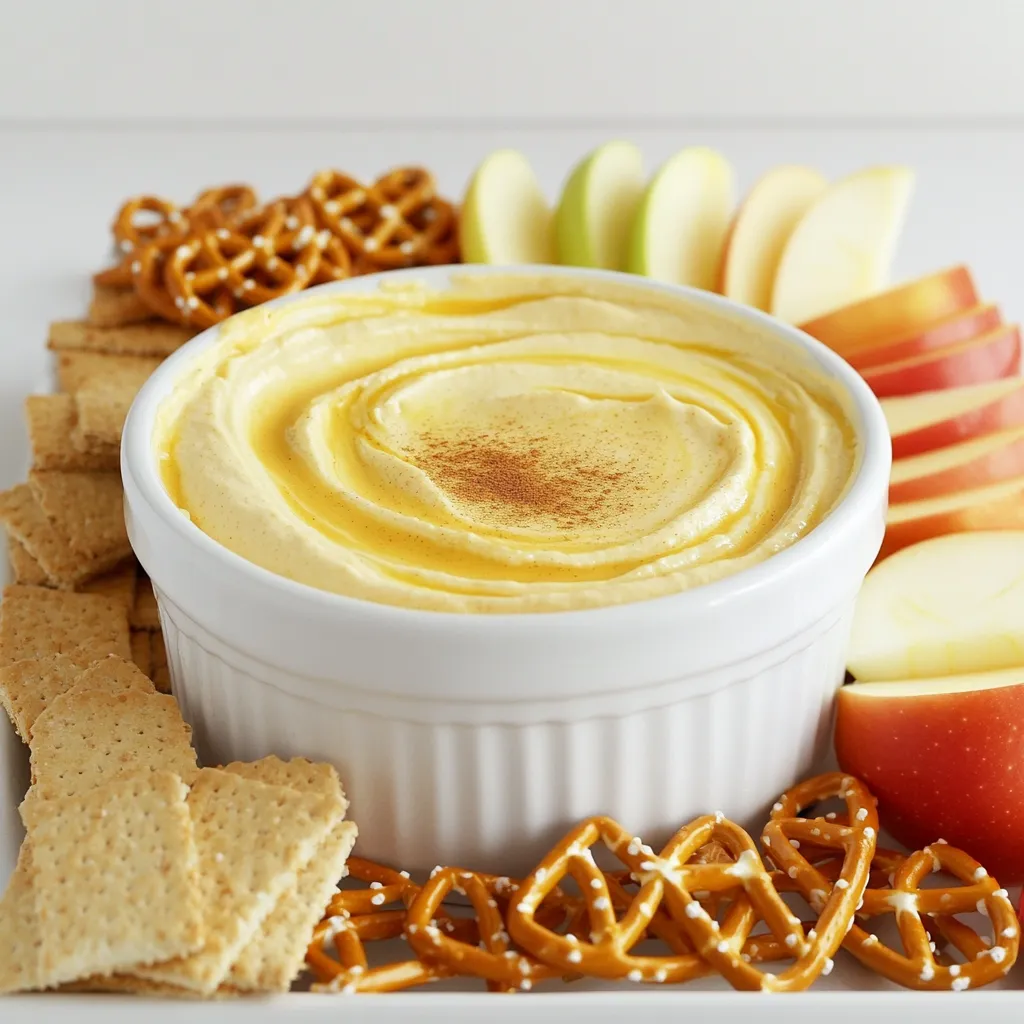 For a fun display, choose a decorative bowl. Smooth the top of the dip for a polished look. Before serving, sprinkle a little pumpkin pie spice on top. Arrange graham crackers, apple slices, and pretzels around the bowl. This creates a lovely color contrast. It’s also an easy way for guests to dip. Enjoy making your pumpkin spice cheesecake dip a star at any party!