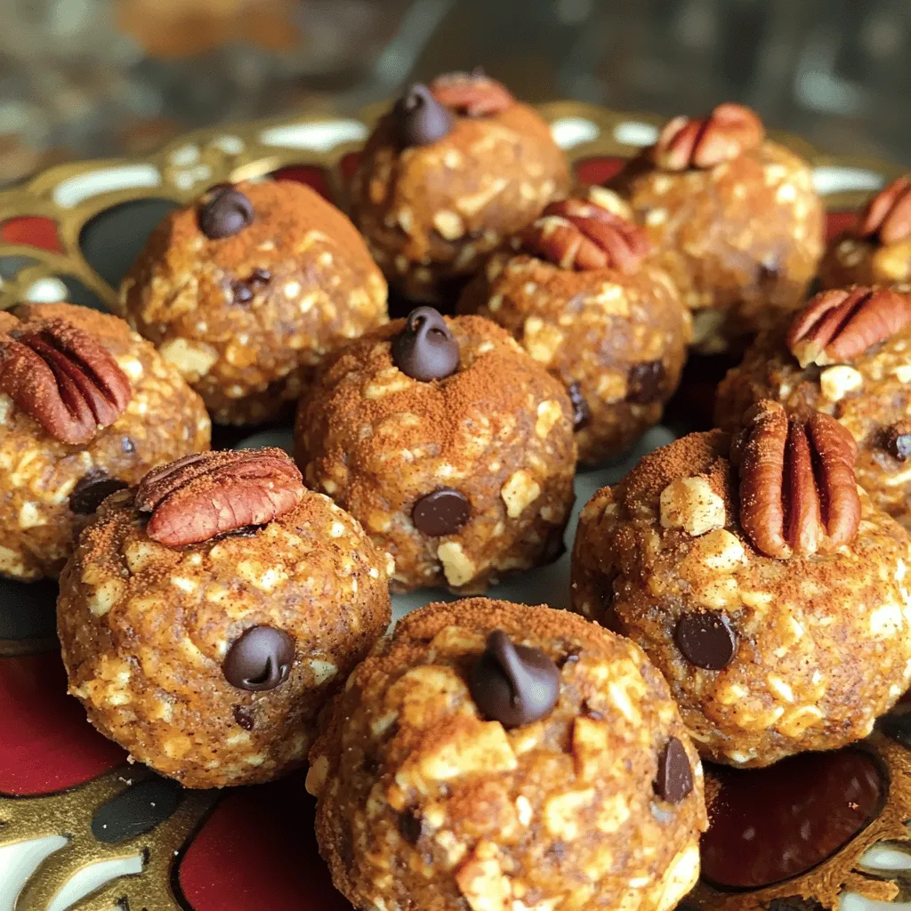 ![To make pumpkin spice energy bites, you need simple ingredients that pack flavor and nutrition. Here is the complete list of ingredients: - 1 cup rolled oats - 1/2 cup almond butter (or peanut butter) - 1/2 cup canned pumpkin puree - 1/4 cup honey or maple syrup - 1 teaspoon vanilla extract - 2 teaspoons pumpkin pie spice - 1/4 teaspoon salt - 1/4 cup mini chocolate chips (optional) - 1/4 cup chopped pecans or walnuts (optional) These ingredients work together to create a delicious and healthy snack. Rolled oats give a chewy texture and provide fiber. Almond butter adds creaminess and healthy fats. Canned pumpkin puree offers moisture and a boost of vitamins. Honey or maple syrup adds sweetness, while vanilla extract enhances flavor. Pumpkin pie spice gives that warm, cozy taste we all love. Feel free to add mini chocolate chips or nuts for extra crunch and flavor. Using the Full Recipe, you can whip these up in just 10 minutes. 1. Combine dry and wet ingredients in a bowl Start by adding the rolled oats, almond butter, and canned pumpkin puree to a large mixing bowl. This mix forms the base of your energy bites. 2. Mix thoroughly to form dough Next, add honey (or maple syrup), vanilla extract, pumpkin pie spice, and salt. Stir well until you form a sticky dough. This helps to blend all the flavors together. 3. Incorporate optional ingredients (chocolate chips and nuts) If you like, fold in mini chocolate chips and chopped nuts. These add great texture and flavor. Feel free to get creative here! 4. Portion and roll into bites Using clean hands, scoop about 1 tablespoon of the mixture. Roll it into a ball. Repeat this process until you use all the dough. This makes it easy to grab and eat later. 5. Refrigerate for firming Place your energy bites on a parchment-lined baking tray. Refrigerate them for at least 30 minutes. This helps them firm up and makes them easier to handle. These steps will help you create delicious Pumpkin Spice Energy Bites that are quick to make and tasty to eat. For the complete recipe, check out the [Full Recipe]. To make the best pumpkin spice energy bites, you want the mixture to be sticky. This helps the bites hold together well. If your mixture is too dry, add a little more almond butter or pumpkin puree. Mix well until everything is combined. Use a cookie scoop for even sizing. This tool helps you form uniform bites. Each bite should be about one tablespoon. This makes them easy to eat and ensures they look nice on a plate. Chill the bites longer if you want them firmer. I recommend at least 30 minutes in the fridge. If you like them really firm, chill for an hour or more. This helps them keep their shape when you grab one. Enjoy your energy bites as a snack or breakfast. They are perfect for busy mornings. You can also serve them at parties or gatherings. Arrange them on a fun platter to impress your guests. Pair them with fresh fruit or yogurt for a balanced meal. They also go well with a warm drink, like tea or coffee. This combo makes for a tasty and satisfying treat. For the full recipe, check out the details above! {{image_2}} You can easily change the nut butter in this recipe. Almond butter is great, but peanut butter works too. If you want to avoid added sugar, try using mashed bananas or unsweetened applesauce instead of honey or maple syrup. Adding dried fruits can boost flavor and texture. Chopped dates or cranberries add sweetness. You can also mix in seeds like chia or flax for more crunch and nutrition. If you like spice, you can adjust the pumpkin pie spice. Add more for a stronger flavor or less for a milder taste. You can even mix in a pinch of cayenne for a little kick. For the holidays, think about adding festive flavors. Try mixing in crushed ginger snaps or a hint of nutmeg. You can also coat your energy bites in a bit of melted dark chocolate for a special treat. Incorporating flavors like peppermint in winter can make these bites even more fun. Just a drop of peppermint extract can transform your snack into a holiday delight. For the full recipe and detailed steps, check out the Pumpkin Spice Energy Bites recipe. To keep your pumpkin spice energy bites fresh, store them in an airtight container. This helps prevent air and moisture from ruining their texture and taste. I recommend using glass or plastic containers with tight lids. Refrigeration is key for short-term storage. Place the container in your fridge. Your bites will stay fresh for up to one week. If you want to keep them longer, freezing is a great option. - To freeze, first, lay the energy bites on a baking sheet. - Freeze them for about 1 hour until firm. - Then, transfer them to a freezer-safe bag or container. This way, they won’t stick together, and you can grab just a few at a time. How long do they last? When stored properly, pumpkin spice energy bites stay fresh for about one week in the fridge. If frozen, they can last for up to three months. Look out for signs of spoilage. If the bites smell off or show any mold, it’s best to toss them. Also, if the texture feels dry or crumbly, they may not taste as good. Enjoy your tasty snack while it's fresh! Can I make these bites vegan? Yes, you can make these bites vegan. Use maple syrup instead of honey. Also, choose a vegan nut butter. Are pumpkin spice energy bites gluten-free? Yes, these bites can be gluten-free. Just use gluten-free rolled oats. Always check labels to be sure. What can I use instead of rolled oats? If you want a different base, try using quick oats or ground nuts. You can also use puffed rice for a lighter texture. How do I make them crunchy instead of chewy? To make them crunchy, add more nuts and seeds. You can also bake them for a few minutes. This will give them a nice crunch. Caloric content per serving Each serving has about 120 calories. This can vary based on optional ingredients, like chocolate chips. Breakdown of macros (carbs, proteins, fats) - Carbohydrates: 15 grams - Protein: 3 grams - 