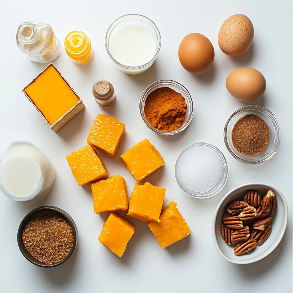 First, we start by preheating the oven to 350°F (175°C). This helps the bake cook evenly. Next, take a 9×13-inch baking dish and grease it to prevent sticking. In a large bowl, combine 1 cup of canned pumpkin puree, 4 large eggs, and 1 cup of milk. Add in 1 teaspoon of vanilla extract, 1 teaspoon of ground cinnamon, 1/2 teaspoon of ground nutmeg, 1/2 teaspoon of ground ginger, and 1/4 teaspoon of salt. Then, mix in 1/2 cup of brown sugar. Whisk until the mixture is smooth.