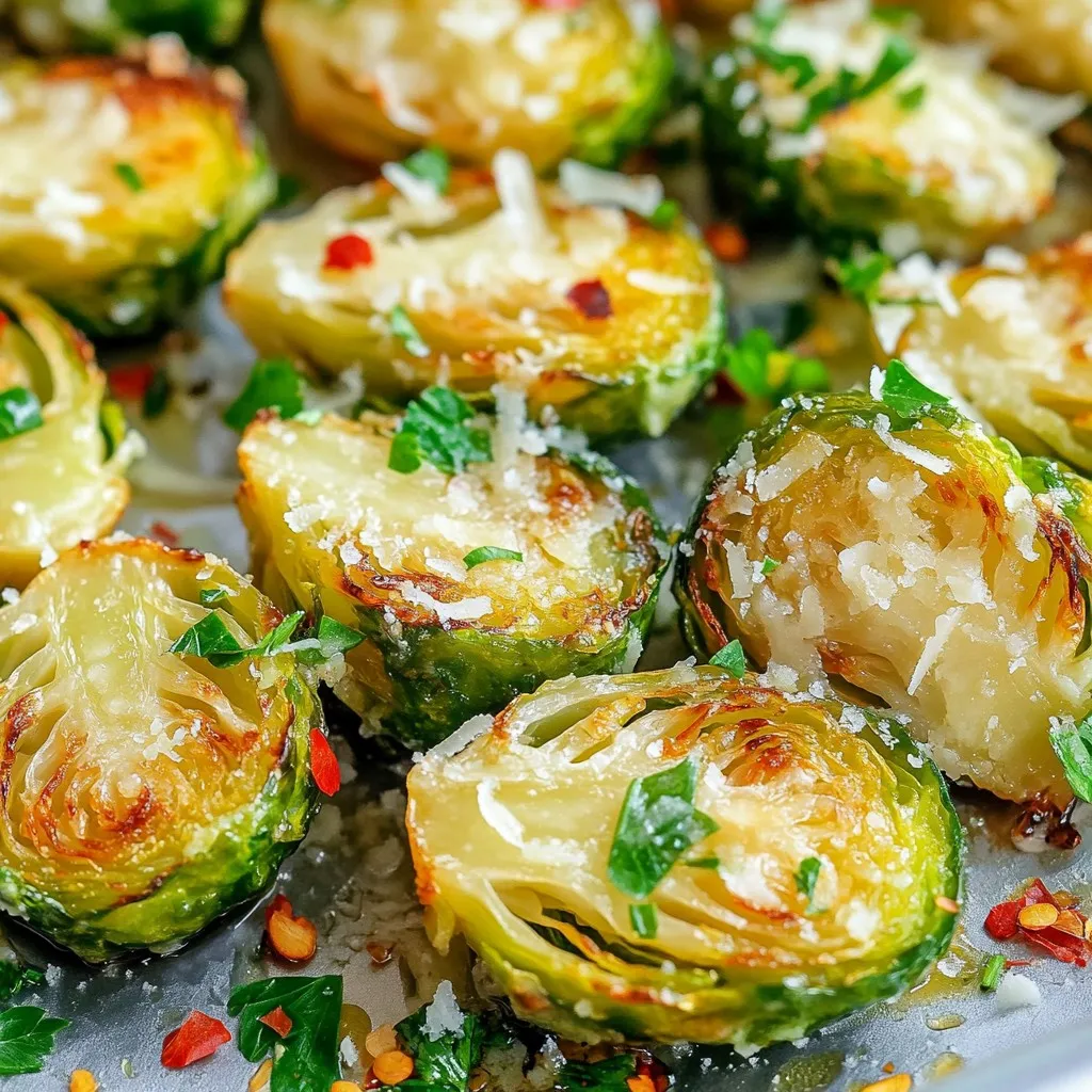 - 1 pound Brussels sprouts, trimmed and halved - 4 cloves garlic, minced - 3 tablespoons olive oil - 1/2 cup grated Parmesan cheese - 1/2 teaspoon red pepper flakes (optional) - Salt and pepper to taste - Fresh parsley, chopped (for garnish) To elevate your Brussels sprouts, try adding some herbs and spices. Fresh thyme or rosemary can add depth. You can also sprinkle some lemon zest for brightness. If you want more cheese, consider using crumbled feta or goat cheese for a tangy twist. Each serving of roasted Brussels sprouts has about 150 calories. These veggies are packed with vitamins C and K. They also contain fiber, which is great for digestion. Plus, Brussels sprouts are low in carbs, making them a healthy choice. {{ingredient_image_1}} First, we need to trim the Brussels sprouts. Cut off the stem end and remove any yellow leaves. Then, slice each sprout in half. This step helps them cook evenly. Next, we prepare the garlic. Take four cloves and mince them finely. Fresh garlic adds a rich flavor to our dish. Now, let’s combine our ingredients in a large bowl. Add the halved Brussels sprouts, minced garlic, and three tablespoons of olive oil. If you like a little heat, toss in half a teaspoon of red pepper flakes. Finally, sprinkle in some salt and pepper to taste. Toss everything together. Make sure each sprout is coated with oil and seasoning. This step is key for great flavor. Preheat your oven to 400°F (200°C). This heat is perfect for roasting. Once the oven is ready, arrange the Brussels sprouts on a baking sheet. Place them cut side down. This helps them get nice and crispy. Roast the sprouts for 20 to 25 minutes. Stir them halfway through to cook evenly. Check for doneness; they should be golden brown and tender. When they are ready, take the baking sheet out. Immediately sprinkle half a cup of grated Parmesan cheese on top. Return the baking sheet to the oven for another five minutes. This melts the cheese to perfection. Once done, remove the sprouts and let them cool slightly. Garnish with fresh chopped parsley before serving. Enjoy your savory dish! - Enhancing garlic flavor: To boost the garlic taste, use fresh garlic. Mince it finely for a stronger bite. You can also roast whole garlic cloves with the sprouts for a sweeter flavor. The longer you cook garlic, the milder it gets, so keep an eye on it. - Achieving the right level of crispiness: Get that perfect crunch by making sure you space the sprouts out on the baking sheet. They need room to roast, not steam. Cut side down helps them caramelize well. Stir them halfway through cooking for even browning. - Best pairings with main dishes: These Brussels sprouts shine next to chicken, beef, or fish. They add a great veggie touch to any meal. Pair them with pasta dishes or grain bowls for a full plate. - Creative presentation ideas: For a fun twist, serve the sprouts in a cast-iron skillet. Sprinkle with extra Parmesan and parsley for color. Place lemon wedges on the side. This adds a fresh pop and brightens the dish. - Overcooking vs. undercooking: Keep a close watch on the sprouts. Overcooking makes them mushy. You want them golden brown and tender, not dark brown and burnt. - Not using enough oil or seasoning: Don’t skimp on the olive oil. It helps the sprouts crisp up and adds flavor. Season well with salt and pepper. Taste before roasting to ensure you have enough. Pro Tips Choose Fresh Brussels Sprouts: Look for firm, tightly packed Brussels sprouts with no yellowing leaves for the best flavor and texture. Don’t Overcrowd the Baking Sheet: Give the Brussels sprouts enough space to roast evenly. Overcrowding can lead to steaming instead of roasting. Experiment with Cheese: While Parmesan is delicious, you can also try other cheeses like pecorino or a blend for different flavor profiles. Adjust the Heat: If you like it spicy, increase the red pepper flakes, or add a dash of your favorite hot sauce for an extra kick! {{image_2}} You can easily switch up the cheese. Use vegan Parmesan for a dairy-free option. It tastes great and keeps the dish savory. You can also mix in other veggies. Carrots, sweet potatoes, or even cauliflower work well. This adds color and new flavors to your meal. Want to take it up a notch? Drizzle balsamic glaze over the sprouts before serving. It adds a sweet and tangy kick. You can also toss in nuts or seeds like almonds or pumpkin seeds. They add crunch and extra flavor, making this dish even more exciting. In autumn, try adding roasted chestnuts or apples. They bring warmth and sweetness to the dish. For the holidays, serve these Brussels sprouts alongside turkey or ham. Their rich flavor pairs well with festive meals. You can even sprinkle pomegranate seeds on top for a pop of color and taste. To keep your Roasted Garlic Parmesan Brussels Sprouts fresh, first let them cool. Once cooled, place them in an airtight container. This will help keep them tasty for up to three days in the fridge. I like using glass containers, as they seal well and are easy to clean. Remember to label the container with the date, so you know when to eat them. When you want to enjoy the leftovers, preheat your oven to 350°F (175°C). Spread the Brussels sprouts on a baking sheet. Bake for about 10 to 15 minutes. This method keeps them crispy. If you’re short on time, you can use the microwave. Just heat them in short bursts, stirring in between to avoid sogginess. Yes, you can freeze Brussels sprouts! After cooking, let them cool completely. Then, place them in a freezer-safe bag. Remove as much air as possible before sealing. They can last up to three months in the freezer. To enjoy them later, thaw them in the fridge overnight. Reheat as mentioned before to bring back the crispiness. Brussels sprouts are packed with nutrients. They are low in calories and high in fiber. This helps you feel full and aids digestion. They are rich in vitamins C and K. Vitamin C boosts your immune system. Vitamin K supports b