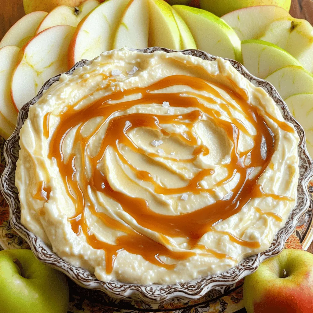 To make your salted caramel apple dip creamy, start with softened cream cheese. Blend it well with powdered sugar until smooth. This ensures a rich base that pairs nicely with the caramel.