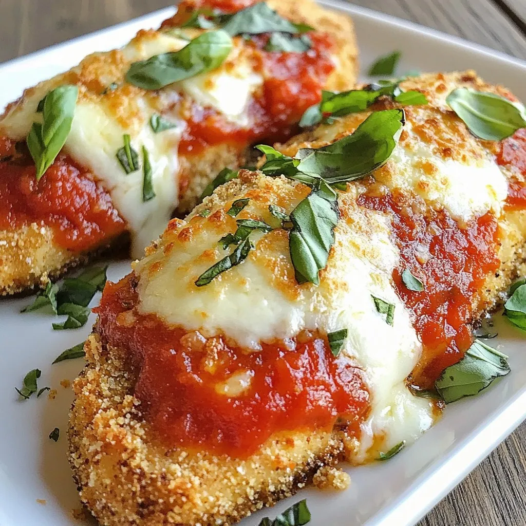 - 2 chicken breasts, flattened to an even thickness - 1 cup breadcrumbs (preferably whole wheat) - 1/2 cup grated Parmesan cheese - 1 teaspoon dried Italian herbs (oregano, basil, thyme) - 1/2 teaspoon garlic powder - 1/4 teaspoon red pepper flakes (optional) - 1 large egg - 1 cup marinara sauce - 1 cup shredded mozzarella cheese - Salt and pepper to taste - Olive oil spray You can mix things up with tasty add-ins. Consider adding chopped fresh herbs like parsley or basil. You could also toss in some sun-dried tomatoes for a burst of flavor. For a kick, try using spicy marinara sauce instead of regular. Choose fresh chicken breasts for the best taste. Look for firm, pink meat with no odor. Use high-quality breadcrumbs for a great crunch. Whole wheat adds a nice texture and flavor. For cheese, fresh Parmesan and mozzarella melt better. Check the labels for no additives or fillers. {{ingredient_image_1}} To start, preheat your air fryer to 375Β°F (190Β°C). This step is key. It helps cook the chicken evenly. A hot air fryer ensures a crispy coating. Next, we prepare the coating. In a shallow bowl, mix together the breadcrumbs, Parmesan cheese, dried Italian herbs, garlic powder, red pepper flakes, salt, and pepper. Stir until everything combines well. In another bowl, whisk the egg until it's smooth. This will help the coating stick to the chicken. Now, it's time to cook the chicken. Dip each flattened chicken breast in the egg. Let any extra egg drip off. Then, coat the chicken in the breadcrumb mixture. Press down to make sure it sticks well. Spray the air fryer basket lightly with olive oil. Place the coated chicken in a single layer in the basket. Lightly spray the tops with olive oil too. Cook the chicken for 10-12 minutes. Flip the pieces halfway through. The chicken should be golden brown and cooked through. While the chicken cooks, warm the marinara sauce in a small pot over low heat. Once the chicken is done, take it out of the air fryer. Spoon some marinara sauce on top of each piece. Sprinkle shredded mozzarella cheese over the sauce. Put the chicken back in the air fryer for another 3-5 minutes. This melts the cheese and makes it bubbly. Carefully remove the chicken and let it rest for a couple of minutes before serving. To get chicken that is crispy, follow a few simple steps. First, use whole wheat breadcrumbs. They add texture and flavor. Second, coat the chicken well with the breadcrumb mix. Press it firmly to ensure it sticks. Finally, spray the tops lightly with olive oil before cooking. This extra touch helps to achieve that golden brown look and crispiness. One common mistake is not preheating the air fryer. Preheating helps cook the chicken evenly. Another mistake is using too much egg. Dip the chicken in the egg, but let excess drip off. Too much egg can make the coating soggy. Lastly, avoid overcrowding the air fryer basket. Cook chicken in a single layer for the best results. Serve your chicken with warm marinara sauce on top. Add a sprinkle of shredded mozzarella cheese for that melty goodness. Pair it with a side of spaghetti for a classic touch. A light salad with fresh greens also complements this dish well. For a colorful plate, add fresh basil or parsley on top before serving. Pro Tips Choose the Right Chicken: Use organic, free-range chicken breasts for better flavor and texture. Double Coating for Extra Crispiness: For an even crunchier texture, dip the chicken in the egg and breadcrumbs a second time. Rest After Cooking: Allow the chicken to rest for a few minutes after cooking to keep it juicy. Customize Your Marinara: Enhance your marinara sauce with fresh herbs, a splash of red wine, or a pinch of sugar to balance acidity. {{image_2}} You can change up the cheese in this dish. Try using provolone for a rich flavor. Gouda adds a nice smokiness. For a bold taste, use sharp cheddar. Each cheese gives a new twist to this classic. While marinara is the go-to, you can switch it up. Pesto offers a fresh and herby flavor. Alfredo sauce gives a creamy touch. Try a spicy arrabbiata for a kick. Each sauce can change the whole vibe of your meal. Add veggies to make your meal more filling. Zucchini or bell peppers work great. You can also serve it with a light salad. Roasted broccoli or asparagus makes a healthy side. These options boost nutrition and add color to your plate. To keep leftover chicken Parmesan fresh, let it cool first. Place the chicken in an airtight container. You can store it in the fridge for up to three days. Make sure to separate the chicken from the sauce. This keeps the chicken crispy. If you want to freeze it, wrap each piece in plastic wrap. Then, put them in a freezer-safe bag. Label the bag with the date. Chicken Parmesan can last up to three months in the freezer. When ready to eat, just thaw it in the fridge overnight. To reheat, use your air fryer for best results. Preheat the air fryer to 350Β°F (175Β°C). Heat the chicken for about 5-7 minutes. This helps retain the crispiness. If you prefer, you can also use an oven. Just warm it at 350Β°F (175Β°C) for about 10-15 minutes. Enjoy your meal fresh! Yes, you can use boneless chicken thighs. They stay juicy and tender. Just trim any excess fat. The cooking time may be slightly different. Check the internal temperature; it should reach 165Β°F (75Β°C). Thighs give a richer flavor, making your dish even better! Preheating the air fryer is important. It helps the chicken cook evenly and become crispy. Set it to 375Β°F (190Β°C) for about 3-5 minutes. This step ensures the breading gets that golden crunch you want. Don’t skip it for the best results! To make this recipe gluten-free, swap regular breadcrumbs for gluten-free ones. Many brands offer great options made from rice or nuts. Ensure your marinara sauce is also gluten-free. Always check the labels to be safe. This way, you can enjoy a tasty meal without worries! In this blog post, we covered the key ingredients for yo