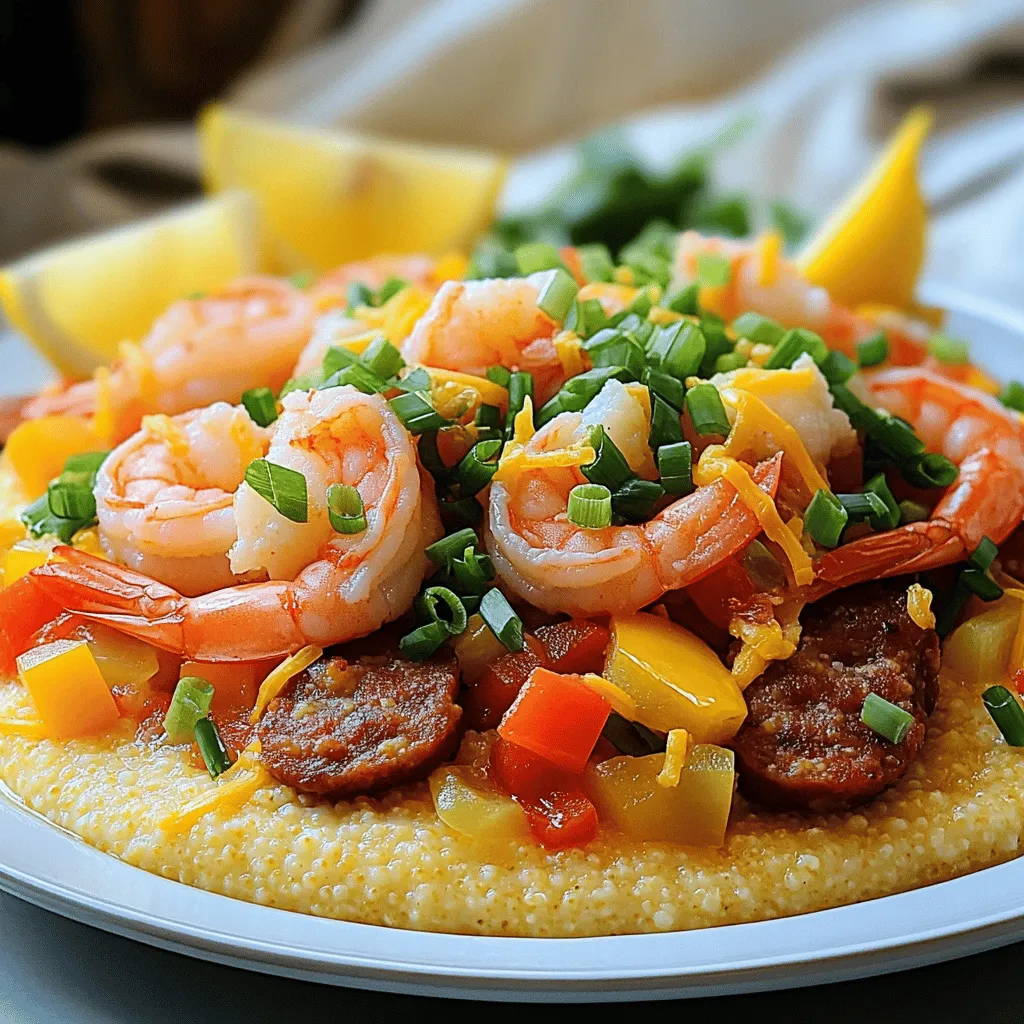 To make this savory dish, you will need: - 1 cup grits (stone-ground preferred) - 4 cups water or chicken broth - 1 pound shrimp, peeled and deveined - 1/2 pound Andouille sausage, sliced - 1 tablespoon olive oil - 1 tablespoon butter - 1 bell pepper (red or green), diced - 1 small onion, diced - 2 garlic cloves, minced - 1 teaspoon smoked paprika - 1/2 teaspoon cayenne pepper (adjust for spice preference) - Salt and black pepper to taste - 1 cup shredded sharp cheddar cheese - 1/4 cup chopped green onions for garnish - Lemon wedges for serving You will need a few key tools to create this dish: - Medium saucepan for the grits - Large skillet for the sausage and shrimp - Whisk for stirring the grits - Knife and cutting board for dicing vegetables - Measuring cups and spoons These tools make the cooking process smooth and easy. This dish serves four people. Each serving has: - Calories: 480 - Protein: 30g - Carbohydrates: 45g - Fat: 20g - Fiber: 2g - Sodium: 800mg Shrimp and grits offer a tasty balance of protein, carbs, and fats. This meal provides energy and satisfaction. For more detailed steps, check out the Full Recipe. Start by boiling water or chicken broth in a medium saucepan. Once it boils, slowly whisk in the grits. Be careful to avoid lumps. Reduce the heat to low and let them simmer for about 20-25 minutes. Stir them often to keep them from sticking. When thick, add cheese, butter, salt, and black pepper. Mix well and keep warm for later. Heat olive oil in a large skillet over medium heat. Add the sliced Andouille sausage and let it cook until it turns brown, which takes about 5-7 minutes. Once cooked, remove the sausage from the skillet and set it aside. This step adds a rich flavor to the dish. In the same skillet, toss in the diced onion, bell pepper, and minced garlic. Sauté these for about 5 minutes. You want them to soften and smell great. This mix will add depth to your dish. Next, push the veggies to one side of the skillet. Add the shrimp to the empty space. Sprinkle smoked paprika, cayenne pepper, salt, and black pepper over the shrimp. Cook for about 3-4 minutes. The shrimp should turn pink and opaque. Stir everything together to mix the flavors well. Now it's time to serve! Spoon the creamy cheese grits onto a plate. Top it generously with the shrimp and sausage mix. Finish by garnishing with chopped green onions. Serve with lemon wedges on the side for a fresh burst of flavor. Enjoy your Shrimp and Grits Delight, made using the Full Recipe! To make great grits, use stone-ground grits. They taste better and give a creamy texture. Always bring your water or broth to a boil before adding the grits. This step helps them cook evenly. Stir them well to avoid lumps. Keep the heat low and stir often. This keeps them from sticking. Cook until thick, about 20-25 minutes. Don’t forget to add cheese and butter for extra flavor! Shrimp cook fast. They only need about 3-4 minutes in the pan. Watch them closely. When they turn pink and opaque, they are done. Overcooking makes shrimp tough. To test, cut one open. It should be white inside. Always buy fresh, high-quality shrimp. This makes a big difference in taste. To boost flavors, use smoked paprika and cayenne pepper. They add depth and a bit of heat. If you like it spicy, adjust the cayenne to your taste. Fresh herbs also brighten the dish. Chopped green onions give a fresh crunch. A squeeze of lemon right before serving adds a zesty touch. Experiment with these tips to find your perfect balance. For the complete recipe, check the Full Recipe section. {{image_2}} You can change the shrimp to other proteins. Chicken or fish works well. For chicken, use boneless thighs. Cut them into small pieces. Cook them until golden brown. For fish, try salmon or tilapia. Cook it gently to keep it flaky. Each option brings a new taste to the dish. For a vegetarian twist, skip the shrimp and sausage. Use mushrooms or firm tofu instead. Sauté them until golden. Add extra veggies like spinach or zucchini for flavor. You can also use vegetable broth for the grits. This will keep it rich and tasty without meat. You can play with flavors in this dish. Add herbs like thyme or basil for a fresh taste. For a kick, use jalapeños or chipotle peppers. They add heat and a smoky flavor. You may also swap the cheese for a different kind. Try pepper jack for spice or feta for a tangy twist. Each change gives a new spin to this classic recipe. For more details on the recipe, check the Full Recipe. To keep your shrimp and grits fresh, store leftovers in an airtight container. Let the dish cool to room temperature before sealing it. Store it in the fridge for up to three days. Keep in mind that the grits may thicken as they cool. Reheat your shrimp and grits on the stove for best results. Add a splash of water or broth to the grits to restore creaminess. Heat over low heat, stirring until warm. For quick reheating, use the microwave. Place in a microwave-safe bowl, cover, and heat in 30-second intervals, stirring in between. You can freeze shrimp and grits but do it carefully. Place the cooled dish in a freezer-safe container. It will keep well for up to two months. When ready to eat, thaw overnight in the fridge. Reheat as mentioned above. Note that the texture may change slightly after freezing. For a full recipe, check out the details above. Yes, you can make shrimp and grits ahead of time. Cook the grits and shrimp separately. Store each in airtight containers. When ready to serve, reheat both in a pot over low heat. Stir occasionally to make them creamy again. If you can't find Andouille sausage, try using chorizo or kielbasa. Both have great flavor. You can also use turkey sausage for a lighter option. Just make sure to cook it well for the best taste. To add spice, use more cayenne pepper in the dish. You can also add hot sauce when cooking. Another option is to include diced jalapeños for a fresh kick. Adjust to your heat level for the perfect b