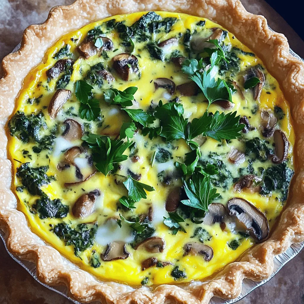 To make a tasty quiche, you need a few key ingredients. The pie crust holds everything together. You can use a store-bought one or make your own if you feel adventurous. Fresh spinach gives the quiche a vibrant color and loads of nutrients. Sliced mushrooms add a rich, earthy taste. Lastly, finely chopped onion brings sweetness to the dish.