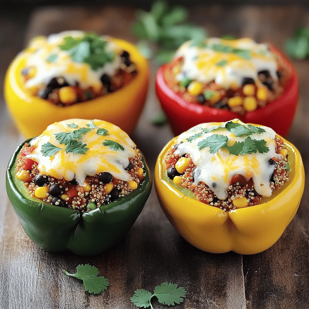 These ingredients come together to create a dish that is not just colorful but also full of flavor. Using fresh ingredients, like colorful bell peppers, makes the dish even more appealing. Quinoa is a fantastic base here; it is healthy and packed with protein. The black beans and corn add texture and sweetness, while spices like cumin and smoked paprika bring warmth and depth. Don’t forget the cheese on top for that perfect melt!