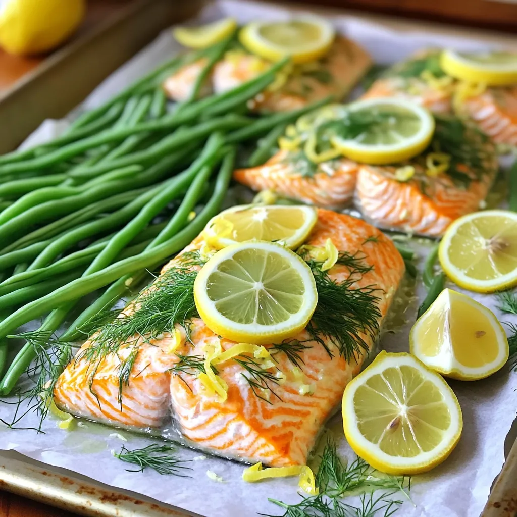 This dish shines with simple yet fresh ingredients. Salmon fillets provide a rich, buttery flavor. Green beans add a crisp and vibrant touch. Lemons bring a bright acidity that cuts through the richness of the salmon. Olive oil is key, adding a smooth texture. Dill gives a fragrant, herbaceous note. Garlic rounds out the flavor profile, giving it a warm depth.