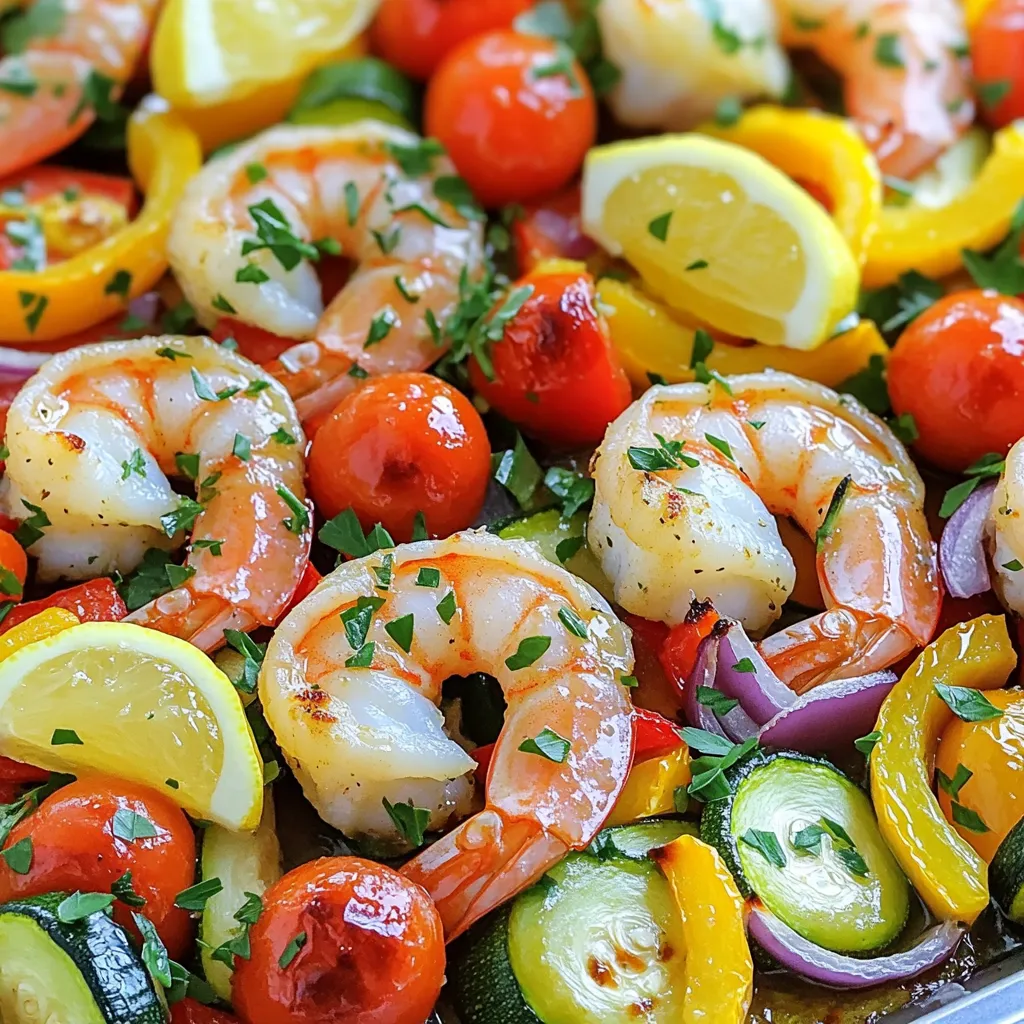 - 1 pound large shrimp, peeled and deveined - 1 cup cherry tomatoes, halved - 1 bell pepper (red or yellow), sliced - 1 zucchini, sliced - 1 red onion, chopped - 3 tablespoons olive oil - Juice and zest of 2 lemons - 4 cloves garlic, minced - 1 teaspoon dried oregano - 1 teaspoon salt - ½ teaspoon black pepper Gather these ingredients to create a tasty dish. The large shrimp forms the star of the meal. Pair it with fresh vegetables like cherry tomatoes, bell peppers, zucchini, and red onion for a colorful mix. The marinade brings everything together. Use olive oil, lemon juice, lemon zest, and minced garlic. This mix adds a bright flavor that complements the shrimp and veggies. Don't forget the seasonings. Dried oregano gives a nice herb touch. Adding salt and black pepper enhances the taste. Make sure to have all the items on hand. This will help you cook faster and keep the process smooth. First, you need to preheat your oven to 400°F (200°C). This step is key for even cooking. While the oven heats, make the marinade. In a small bowl, whisk together the olive oil, lemon juice, lemon zest, minced garlic, oregano, salt, and black pepper. Mix well until everything blends nicely. Next, take the shrimp and place it in a large zip-lock bag or bowl. Add half of the marinade you just made. Toss the shrimp to coat it well. Let it sit for about 15 to 20 minutes. This will give the shrimp great flavor. Now, grab a large sheet pan. Spread out your cherry tomatoes, sliced bell pepper, zucchini, and chopped red onion. Drizzle the remaining marinade over these veggies. Toss them well to ensure they are all coated in the tasty marinade. After the shrimp has marinated, it's time to bake. Add the marinated shrimp on top of the veggies in a single layer. Place the sheet pan in the preheated oven. Bake for about 12 to 15 minutes. You know it's done when the shrimp turns pink and the veggies are tender. Enjoy the wonderful smells wafting through your kitchen! To achieve optimal shrimp doneness, cook them until they turn pink. This usually takes about 12-15 minutes at 400°F. Overcooking makes shrimp tough. Check them a minute early to avoid this. For even cooking of vegetables, cut them into similar sizes. This way, they cook at the same rate. Cherry tomatoes and bell peppers should match the zucchini and onion. Toss them with the marinade well. This helps them roast nicely. Serve directly from the sheet pan for a casual feel. The colors of the shrimp and veggies look great together. For a more elegant touch, divide the dish onto plates. Add lemon wedges on each plate. This adds a pop of color and flavor. If you want to use a grill, follow the same marinade steps. Skewer the shrimp and veggies. Grill them over medium heat for about 8-10 minutes. Watch closely to avoid burning. For stovetop cooking, use a large skillet. Heat some oil, then add the marinated shrimp and veggies. Cook over medium heat for about 10 minutes, stirring often. This method gives you a nice char and flavor. {{image_2}} You can easily switch up the vegetables in this dish. Try using asparagus, broccoli, or snap peas. Each adds a new taste and texture. If you want a different protein, consider chicken or firm tofu. Both options soak up the lemon garlic flavor well. To change the flavor, add spices like paprika or cayenne for heat. Fresh herbs like basil or cilantro can also brighten the dish. If you want a spicy kick, toss in some red pepper flakes. This small addition can really pack a punch! Making this dish gluten-free is simple. All the main ingredients are already gluten-free. To keep it low-carb, skip the zucchini or use less. Cauliflower can be a great swap for any starchy veggie. It will still taste great while keeping the carbs low. To keep your sheet pan lemon garlic shrimp and veggies fresh, follow these steps: - Place leftovers in an airtight container. - Store in the fridge for up to 3 days. - For longer storage, freeze leftovers in a freezer-safe bag. When freezing, remove as much air as possible to prevent freezer burn. This helps keep the shrimp and veggies tasty. Reheating shrimp and veggies can be simple and quick. Here are some methods: - Microwave: Place on a microwave-safe plate. Heat for 1-2 minutes, stirring halfway. - Oven: Preheat to 350°F (175°C). Spread on a baking sheet. Heat for 10 minutes or until warm. To keep the shrimp juicy and veggies crisp, avoid overheating. Add a splash of water in the microwave to create steam. You can safely store leftovers in the fridge for 3 days. If frozen, they last for up to 2 months. Always check for signs of spoilage before eating. If it smells off or looks strange, toss it out! You can serve this dish with several tasty sides. Here are some ideas: - Rice: White or brown rice pairs well. It soaks up the juices. - Quinoa: This grain adds protein and a nutty flavor. - Pasta: Lightly dressed pasta complements the shrimp and veggies. - Salad: A fresh salad adds crunch and brightness. - Crusty Bread: Use it to scoop up shrimp and veggies. These sides make your meal feel complete and satisfying. Yes, you can use frozen shrimp for this recipe. Here’s how: 1. Thawing: First, place the shrimp in a bowl of cold water for about 15-20 minutes. 2. Marinating: Once thawed, dry the shrimp before marinating. 3. Cooking: Add a couple of minutes to the baking time if the shrimp is still cold. Using frozen shrimp is a great way to save time and still enjoy this dish. Perfectly cooked shrimp should be pink and opaque. Here are some signs: - Color Change: Raw shrimp are gray. Cooked shrimp turn pink. - Shape: Cooked shrimp curl into a C shape. - Texture: They should feel firm and not squishy. Keep an eye on them to avoid overcooking. They cook quickly! Yes, this recipe works well for meal prep. Here are some tips: - Batch Cooking: You can double the recipe for more servings. - Storage: Store in airtight containers in the fridge for up to 3 days. - Reheating: Reheat gently in the microwa