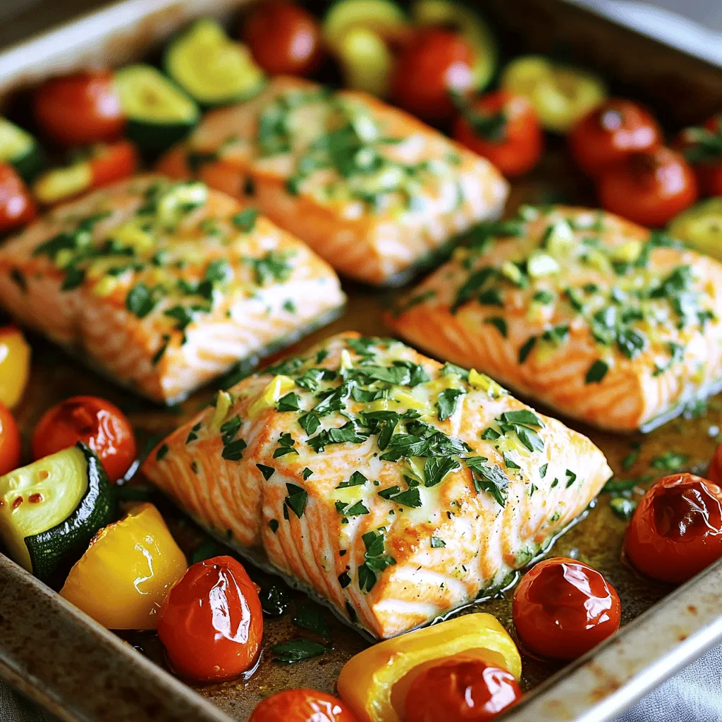 When it comes to measurements, precision matters for a great dish. Each salmon fillet should weigh around 6 ounces for even cooking. If you need a lighter meal, you can use 4-ounce fillets. Olive oil adds richness, but you can swap it for avocado oil if preferred. Fresh lemon juice brightens the dish. If you don’t have fresh, bottled juice works too, but use less. The zest of one lemon enhances the flavor. You can skip it, but I don’t recommend it. Garlic is key for depth. If you prefer, garlic powder works as a substitute. Dried oregano and thyme add aroma. Fresh herbs give better flavor but use double the amount if you have them. Lastly, use any colorful bell peppers you have, as each adds its own flair.