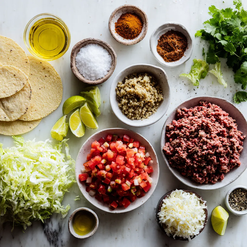 For these tacos, the main ingredients create a bold flavor. Ground beef is the heart of the dish. It cooks quickly and absorbs spices well. The chipotle peppers in adobo sauce add heat and smokiness. This makes your tacos exciting. Diced onion and minced garlic add depth. The spices, like cumin and smoked paprika, round out the flavor profile. If you like it spicy, adjust the cayenne pepper to your taste.
