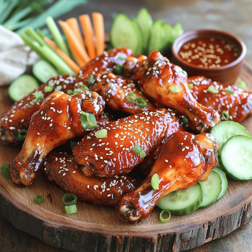 Serve your wings on a nice platter. Add fresh vegetable sticks, like cucumbers and carrots, around the wings. You can also include a small bowl of extra Gochujang for dipping. This adds a fun touch for your guests!