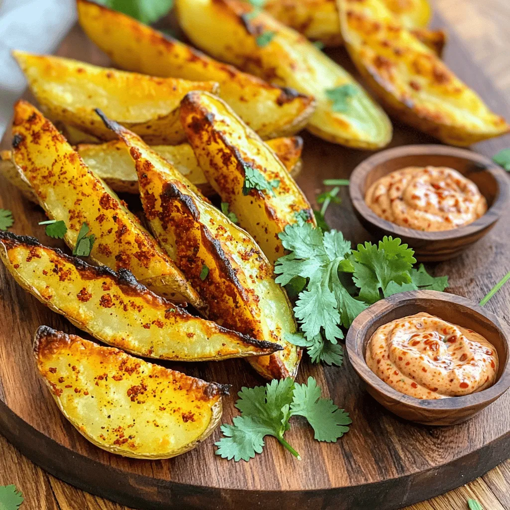 - 4 medium-sized russet potatoes, washed and cut into wedges - 3 tablespoons olive oil - 2 tablespoons smoked paprika - 1 teaspoon cayenne pepper (adjust to taste) - 1 teaspoon garlic powder - 1 teaspoon onion powder - 1 teaspoon dried oregano - Salt and pepper to taste - Fresh cilantro or parsley for garnish - Baking sheet - Parchment paper - Mixing bowl - Knife and cutting board When making spicy roasted potato wedges, gathering your ingredients is key. I love using russet potatoes because they get crispy and fluffy. You will need a large mixing bowl to hold the wedges and the spice mix. Using olive oil helps the spices stick and adds great flavor. Smoked paprika gives a warm, smoky taste. Adjust the cayenne pepper based on how much heat you want. The garlic and onion powder add depth to the flavor. Dried oregano brings a nice herbal note. Don't forget the salt and pepper to enhance everything. Fresh cilantro or parsley adds a pop of color and freshness. For tools, a baking sheet lined with parchment paper makes cleanup easy. A sharp knife and cutting board help you cut the potatoes quickly. You can find the full recipe at the beginning of the article. - Preheat your oven to 425°F (220°C). - Prepare the baking sheet with parchment paper. - In a large bowl, combine: - 3 tablespoons olive oil - 2 tablespoons smoked paprika - 1 teaspoon cayenne pepper (adjust to taste) - 1 teaspoon garlic powder - 1 teaspoon onion powder - 1 teaspoon dried oregano - Salt and pepper to taste Mix well to create a spicy oil mixture. The smoky, spicy flavors will make your potato wedges pop. - Add 4 medium-sized russet potatoes, washed and cut into wedges, to the spicy oil mixture. - Toss until the wedges are evenly coated. Make sure every wedge gets the spicy love. - Place the coated potato wedges on the baking sheet in a single layer. - Roast them in the oven for 30-35 minutes. - Flip halfway through for even cooking. This step ensures they turn golden and crispy. Check them at the end of cooking. They should be crisp on the outside and tender inside. Enjoy your spicy roasted potato wedges! For the full recipe, refer to the earlier sections. To get the best crispiness, space the wedges well on the baking sheet. Leave space between each wedge. This allows hot air to flow around them. If you want a quicker method, try air frying. The air fryer gives a nice crunch and cooks faster. If you like it spicy, add more cayenne pepper. For less heat, reduce the amount. You can also use other spices. Try chili powder for heat or smoked paprika for flavor. Fresh herbs like thyme or rosemary can also add a nice touch. Garnish your potato wedges for extra flavor. Fresh cilantro or parsley works great. You can also add a drizzle of lime juice for a fresh kick. Try serving them with sauces like chipotle mayo or zesty ranch. This adds both flavor and makes them fun to eat! {{image_2}} You can change the taste of your spicy roasted potato wedges in fun ways. Adding cheese makes them even more delicious. I suggest using shredded cheddar or mozzarella. Just sprinkle it on top during the last few minutes of baking. The cheese will melt and create a tasty crust. You can also play with herbs and spices. Try adding chili powder for a smoky kick or cumin for a warm flavor. Mixing in a bit of rosemary or thyme can add freshness to your dish. Experiment with what you love. Each combination gives a new twist. Want to make these wedges even faster? Use an air fryer. Set it to 400°F (200°C) and cook for about 20 minutes. Shake the basket halfway through for even crispiness. They will come out crunchy on the outside and tender inside. If you're enjoying the summer sun, grilling is a great option. Toss the potato wedges in the spicy oil mixture as usual. Then, place them on the grill over medium heat. Cook for about 15-20 minutes, turning occasionally. This method gives a nice char and smoky flavor. These spicy roasted potato wedges are not just a snack; they are great as a side dish too. Serve them alongside burgers or grilled chicken for a complete meal. They also pair well with fresh salads, adding a nice crunch. For dipping, you can’t go wrong with classic options. Try chipotle mayo for a spicy kick or zesty ranch for cooling balance. You can also mix up a simple garlic aioli for a creamy dip. These tasty additions make the dish even more enjoyable. For the full recipe, check out the details above! To keep your spicy roasted potato wedges fresh, cool them first. After they cool, place them in an airtight container. This helps keep them crispy for longer. Store the container in the fridge. They should last about 3 to 5 days. To enjoy your leftovers, reheating them is key. The oven works best for keeping their crunch. Preheat it to 400°F (200°C). Spread the wedges out on a baking sheet. Heat for about 10 to 15 minutes. Flip them halfway for even warmth. If you use a microwave, they may get soft. For a quick fix, heat them in 30-second bursts. Yes, you can freeze cooked potato wedges! To do this, let them cool completely. Arrange them in a single layer on a baking sheet and freeze for 1 to 2 hours. Once firm, transfer them to a freezer bag. They can last up to 3 months. When ready to eat, bake them straight from the freezer. Adjust the baking time as needed for perfect warmth. For the full recipe, check out the Spicy Roasted Potato Wedges section. Yes, you can use different potatoes! While russet potatoes work well, other types can add unique flavors. Here are some good options: - Yukon Gold: Creamy texture and buttery flavor. - Red Potatoes: Slightly sweet and hold their shape well. - Sweet Potatoes: Adds a sweet twist and vibrant color. Keep in mind that cooking times may vary. Thin potatoes may cook faster, while thicker ones need more time. Adjust your cooking time based on the type you use. These spicy roasted potato wedges pair great with many dishes. Consider serving them with: - Grilled chicken or steak for a hearty meal. 