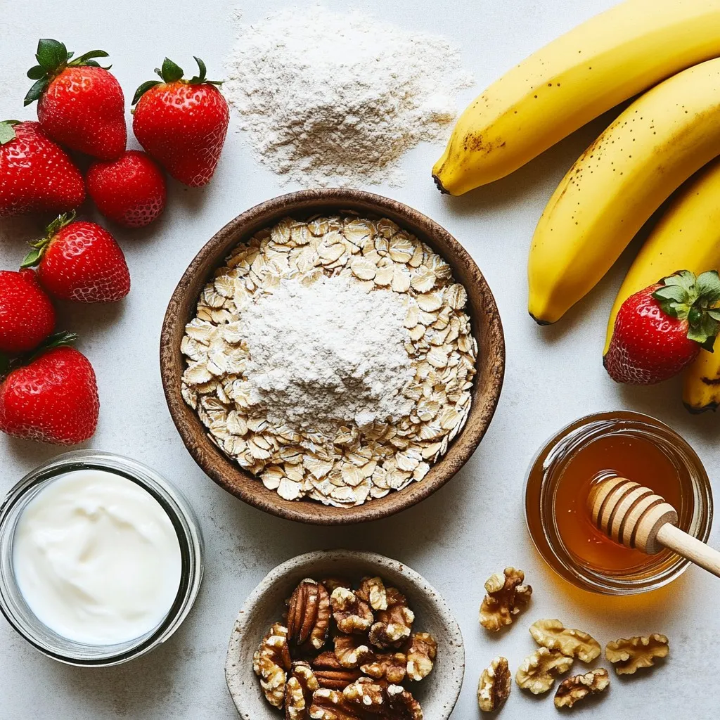 To make delicious strawberry banana oat muffins, gather these simple ingredients: