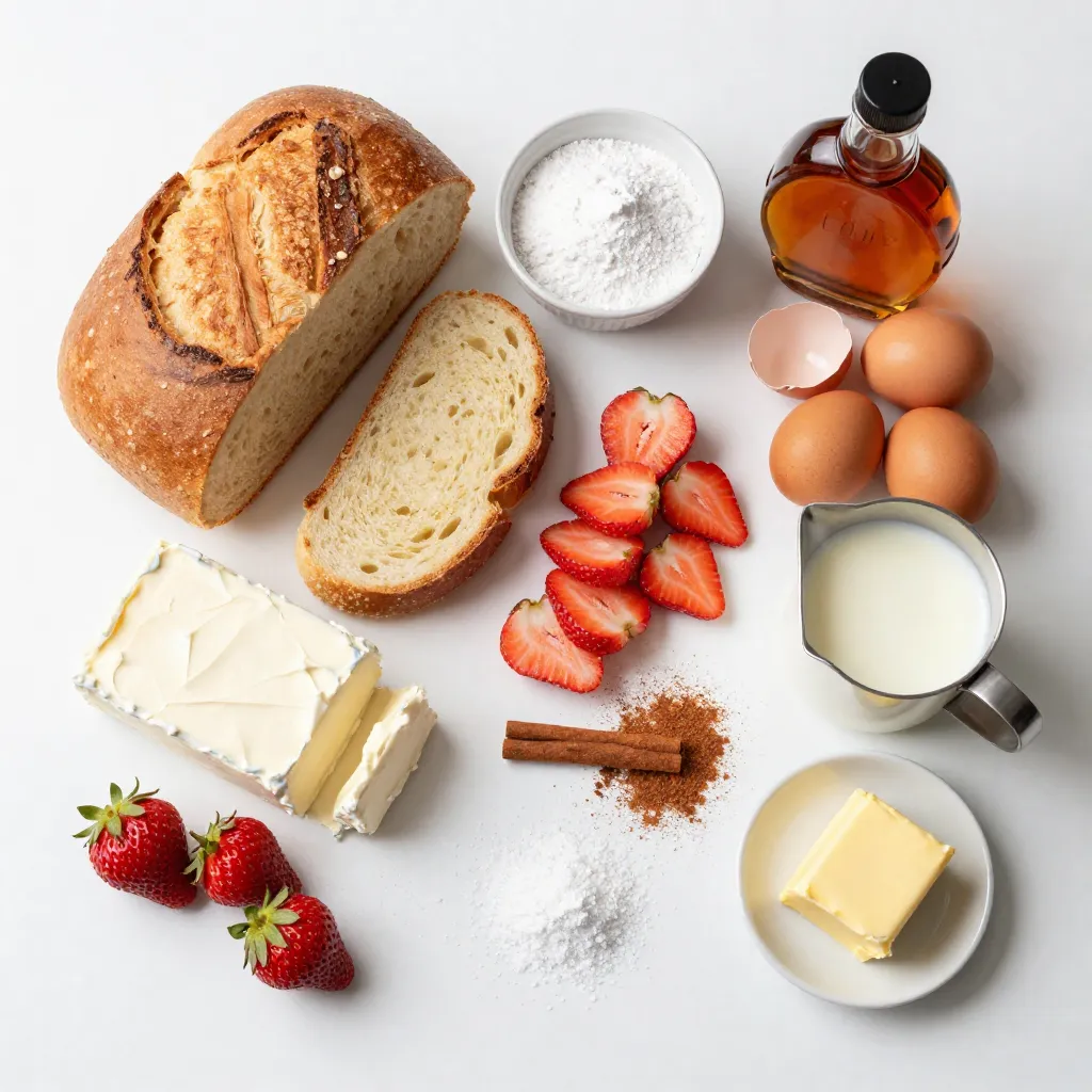 To make Strawberry Cream Cheese Stuffed French Toast, you need a few key items. Start with your bread. I love using thick-cut challah or brioche. These options give the toast a soft and rich taste. The cream cheese is the star here. It needs to be softened for easy mixing.