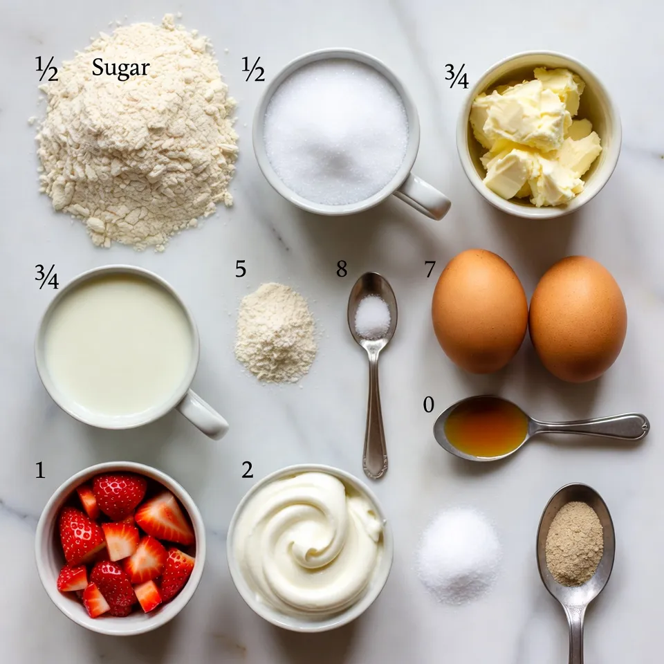 Baking powder makes the cupcakes rise, while vanilla extract enhances the sweet flavor. Salt balances the sweetness and brings out other flavors. Fresh strawberries add a burst of fruitiness. Heavy cream turns into whipped cream, which is a must for topping. Lastly, the extra strawberries are perfect for garnish, making the cupcakes look lovely.