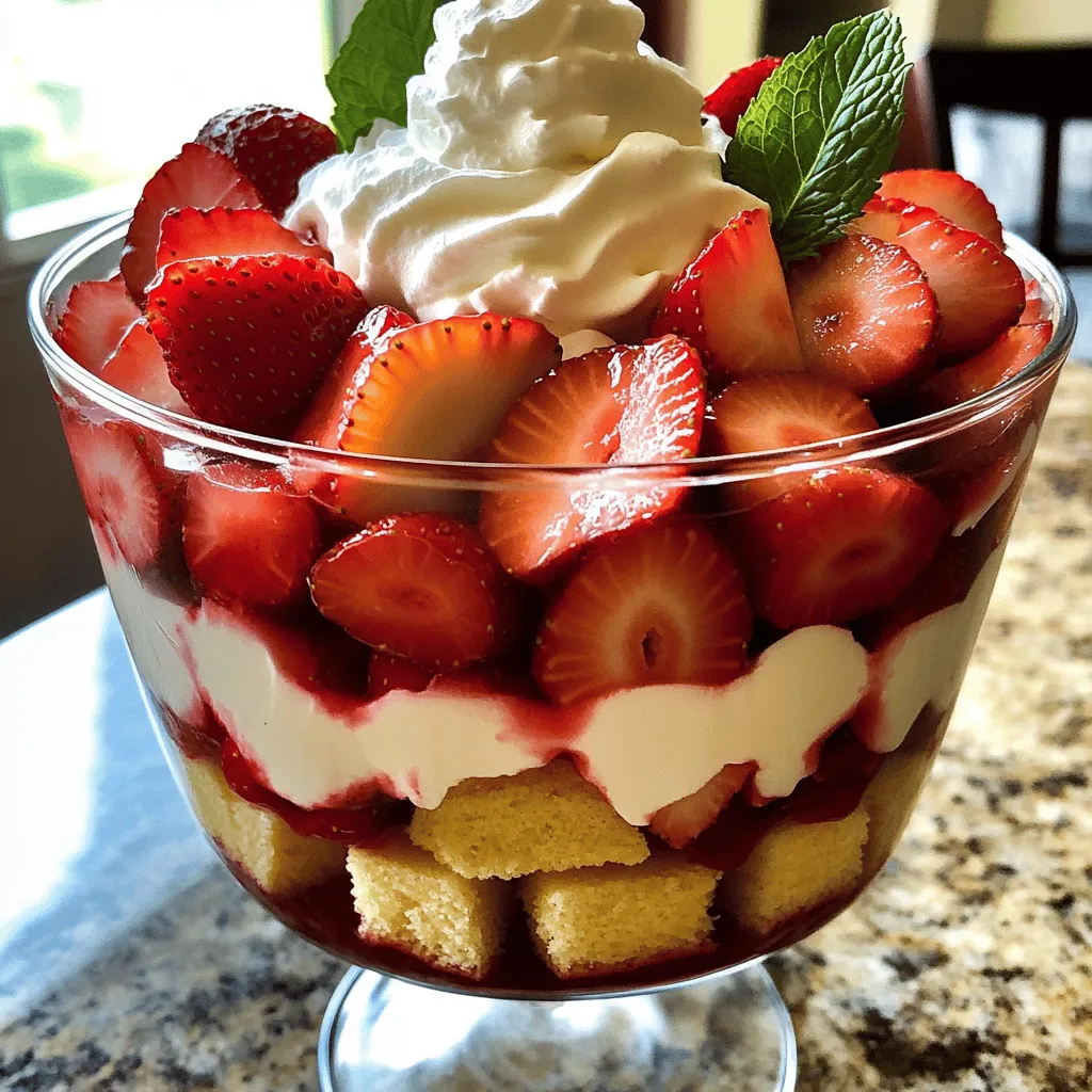 When prepping, make sure to layer the trifle just before serving. This keeps the cake from getting soggy. You can prepare the strawberries and whipped cream ahead of time. Store them separately in the fridge. This way, you can assemble your trifle quickly when guests arrive.