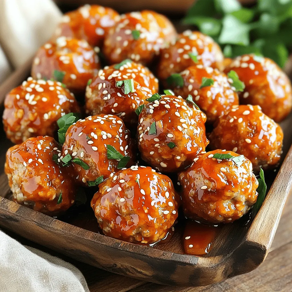 ![To make sweet chili glazed meatballs, you need these key ingredients: - 1 lb ground chicken or turkey - 1/2 cup breadcrumbs - 1/4 cup grated Parmesan cheese - 1/4 cup fresh parsley, chopped - 1 egg, beaten - 3 cloves garlic, minced - 1 teaspoon ginger, grated - Salt and pepper to taste - 1/2 cup sweet chili sauce - 2 tablespoons soy sauce - 1 tablespoon rice vinegar - 1 teaspoon sesame oil - Sesame seeds (for garnish) These ingredients create a nice mix of flavors and textures. The ground chicken or turkey keeps them light, while the breadcrumbs bind them well. The Parmesan cheese adds a savory touch. You can add some fun garnishes or extras to make your meatballs even better: - Chopped green onions - Crushed red pepper flakes for heat - Chopped cilantro for freshness - A squeeze of lime juice for a tangy kick These options let you customize the dish to your taste. You can mix and match based on what you have at home. Don’t worry if you can’t find an ingredient! Here are some easy swaps: - Use ground beef or pork instead of chicken or turkey. - Swap breadcrumbs for crushed crackers or oats. - Try mozzarella instead of Parmesan for a different cheese flavor. - Use coconut aminos instead of soy sauce for a gluten-free option. These substitutions can help you use what you have on hand. They still keep the spirit of the dish intact. For the full recipe, check out Sweet Chili Glazed Meatballs. Start by preheating your oven to 400°F (200°C). This step is vital for even cooking. While the oven heats, line a baking sheet with parchment paper. This will help the meatballs cook nicely without sticking. In a large bowl, combine the following ingredients: - 1 lb ground chicken or turkey - 1/2 cup breadcrumbs - 1/4 cup grated Parmesan cheese - 1/4 cup fresh parsley, chopped - 1 egg, beaten - 3 cloves garlic, minced - 1 teaspoon ginger, grated - Salt and pepper to taste Mix these items well but don’t overwork it. You want a good blend without making the meat tough. Now, use your hands to shape the mixture into 1-inch meatballs. Place them evenly on the prepared baking sheet. Make sure they are not too close together. Bake the meatballs for about 20 minutes. They should turn golden brown and be fully cooked. While the meatballs bake, grab a small bowl. Whisk together: - 1/2 cup sweet chili sauce - 2 tablespoons soy sauce - 1 tablespoon rice vinegar - 1 teaspoon sesame oil Mix until all the ingredients blend well. This glaze adds a wonderful flavor. Once the meatballs are done, take them out of the oven. Brush or toss the hot meatballs in the sweet chili glaze until they are well coated. For extra flavor, you can return them to the oven. Broil them for 2-3 minutes, but watch closely to avoid burning. Finally, sprinkle sesame seeds on top for a nice finish. Now, you’re ready to serve these delicious meatballs warm. For the full recipe with details, check out the [Full Recipe]. To get the best meatball texture, you want them to be tender but firm. Start with ground chicken or turkey. These meats keep the meatballs light and fluffy. Add breadcrumbs to help them hold together. Don’t overmix the meat; just combine the ingredients well. This keeps them from becoming tough. Make sure to shape them into even 1-inch balls for even cooking. Herbs and spices can really boost the flavor of your meatballs. Fresh parsley adds a nice touch. You can also try adding some chopped green onions or cilantro for a fresh kick. Grated ginger gives a subtle warmth. If you like a little heat, consider adding red pepper flakes. These small changes can make your meatballs truly stand out. One common mistake is overcooking the meatballs. Keep an eye on them in the oven. Remove them once they are golden brown. Another mistake is using too much moisture in the mix. If the mixture feels too wet, add more breadcrumbs. Lastly, don’t forget to let the meatballs rest for a few minutes after cooking. This helps keep them juicy. For the full recipe, check out the section above. {{image_2}} You can use many types of meat for these meatballs. Ground chicken or turkey works well. You can also use ground beef or pork for a richer flavor. If you want a lighter option, try ground lamb. For a vegetarian choice, mix cooked lentils or chickpeas with breadcrumbs and spices. Each meat brings its own taste and texture, so feel free to experiment. While sweet chili sauce is a star, you can switch it up. Try teriyaki sauce for a sweet and salty kick. A spicy sriracha sauce adds heat if you like a kick. You can also use barbecue sauce for a smoky flavor. Mix in some honey or lime juice for a fresh twist. Each sauce changes the dish, so explore what you love best. These meatballs fit many occasions. For a casual party, serve them on toothpicks as appetizers. Pair them with rice for a family dinner. You can also toss them in a salad for a light lunch. If you’re celebrating, make a big batch and serve with drinks. They are easy to share and always popular. Check out the Full Recipe for more tips on serving! To keep your sweet chili glazed meatballs fresh, place them in an airtight container. I like to layer parchment paper between the meatballs to avoid sticking. Make sure they cool down first. This will help keep their texture nice. Store the container in the fridge for up to three days. Freezing meatballs is a great option for later meals. First, place the cooled meatballs on a baking sheet in one layer. Freeze them for about an hour. Once frozen, transfer them to a freezer bag. Remove as much air as possible. They can last for up to three months in the freezer. When you're ready to eat them, thaw overnight in the fridge. Reheat them in the oven at 350°F (175°C) until hot. You can also use a microwave for a quick meal. When stored properly, sweet chili glazed meatballs have a good shelf life. In the fridge, they stay fresh for about three days. If frozen, they last much longer. Just remember that the quality may change over time. It's b