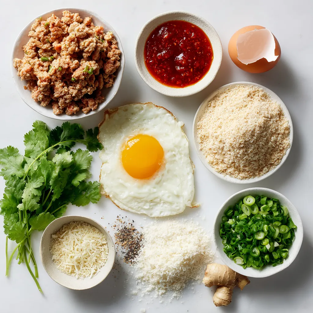 - In a large bowl, combine ground turkey, breadcrumbs, Parmesan cheese, green onions, minced garlic, grated ginger, sweet chili sauce, egg, salt, and pepper.