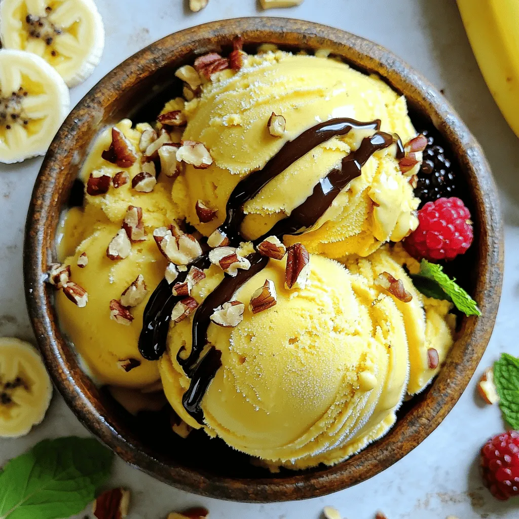 - 4 ripe bananas, sliced and frozen - 1 tablespoon almond butter (or any nut/seed butter) - 1 teaspoon vanilla extract - 1/4 cup coconut milk (or any plant-based milk) - A pinch of salt To make vegan banana ice cream, you need ripe bananas. They should be yellow with brown spots. This means they are sweet and soft. The almond butter adds creaminess and rich flavor. Coconut milk gives a nice texture and sweetness, too. The vanilla extract enhances the taste. A pinch of salt makes the flavors pop. - Chopped nuts - Shredded coconut - Dark chocolate chips - Fresh berries Toppings make your ice cream fun! Chopped nuts give a crunchy bite. Shredded coconut adds a tropical touch. Dark chocolate chips are rich and delicious. Fresh berries bring a burst of flavor. You can mix and match these toppings for a special treat! For the full recipe, check out the detailed steps to create this creamy delight. To start, you need ripe bananas. They should have brown spots. This means they are sweet and perfect for ice cream. Freezing bananas: Peel the bananas and slice them into small pieces. Place the slices on a baking sheet lined with parchment paper. Make sure they do not touch each other. Freeze them for at least two hours or until they are solid. Slicing technique: Slice the bananas into about half-inch rounds. This size helps them freeze evenly. Even slices will blend better later. You will need a food processor for this step. A strong blender can also work, but a food processor gives the best results. Adding ingredients: Once your banana slices are frozen, take them out. Put the slices in the food processor. Add one tablespoon of almond butter, one teaspoon of vanilla extract, and a pinch of salt. These ingredients enhance the flavor of your ice cream. Blend the mixture until it starts to break down. Scrape down the sides of the bowl as needed. Soft-serve vs. firmer ice cream: If you want a soft-serve texture, you can serve it right away. If you want it firmer, transfer it to an airtight container. Freeze it for one to two more hours. Mixing in sweeteners if needed: Taste the mixture. If you want it sweeter, you can add maple syrup or agave syrup. Blend again to mix. This creamy vegan banana ice cream is a simple treat. Follow these steps, and you’ll enjoy a delicious dessert in no time. For the full recipe, check out Creamy Dreamy Vegan Banana Ice Cream. To make the best vegan banana ice cream, choose ripe bananas. The riper they are, the sweeter and creamier your ice cream will be. Look for bananas with lots of brown spots. These bananas are sweet and soft, perfect for blending. Chill your equipment before you start. Place your food processor bowl in the fridge for a bit. This helps keep your ice cream cold and creamy as you blend. You can switch out the almond butter for other nut butters. Peanut butter adds a nice kick. Sunflower seed butter works well too. These options give your ice cream a unique flavor and texture. For the milk, you can try different dairy-free options. Cashew milk adds creaminess. Oat milk gives a nice taste too. Each milk will change the flavor a bit, so feel free to experiment. When serving, scoop the ice cream into fun bowls or cones. This makes it look inviting. You can add toppings like chopped nuts or shredded coconut. Dark chocolate chips or fresh berries also make great choices for extra flavor. Try pairing your vegan banana ice cream with other desserts. It goes well with brownies or pie. You can also serve it with fresh fruit for a refreshing treat. {{image_2}} You can make a tasty chocolate banana ice cream by adding cocoa powder or chocolate chips. Start by mixing in two tablespoons of cocoa powder when you blend the base. This gives your ice cream a rich, chocolatey flavor. If you prefer, add dark chocolate chips after blending. This adds a fun crunch and bursts of chocolate in each bite. You can also infuse your banana ice cream with other fruits. Strawberry banana ice cream is easy and delicious. Just blend in one cup of fresh strawberries with the bananas. This adds a sweet and tangy twist. Another option is a mango and banana twist. Blend one cup of frozen mango with the bananas to create a tropical treat. Want to spice things up? Try adding nutmeg or cinnamon to your mix. Just a pinch will add warmth and depth to your ice cream. You can also fold in cookie crumbles for a fun texture. Use your favorite vegan cookies for a sweet surprise in every scoop. For the full recipe, be sure to check out the instructions above. Enjoy your creamy and delicious treat! To keep your vegan banana ice cream fresh, use airtight containers. This helps prevent ice crystals from forming. Fill the container, leaving some space at the top. The ice cream will expand as it freezes. After freezing, handle it carefully. When scooping, use a warm spoon for easier serving. For the best taste, consume the ice cream within two weeks. After that, the flavor may fade. Look for signs of freezer burn. If you see white spots or a dry texture, it's time to toss it. These signs mean the ice cream is no longer at its best. Can you refreeze melted ice cream? Yes, but it might lose some creaminess. To keep the flavor and texture, try to serve it right away. If you must refreeze, let it sit at room temperature for a few minutes before serving next time. This helps restore some of its original smoothness. Use very ripe bananas for this recipe. Ripe bananas have brown spots. They are sweeter and creamier. The sugar content rises as they ripen, giving a rich flavor. You want bananas that feel soft but not mushy. This is key for that smooth texture in your vegan banana ice cream. Yes, you can! If you don't have a food processor, try a blender. A high-powered blender works well too. You can also mash the bananas with a fork. It may take more time, but it is still doable. After mashing, mix in the other ingredients in a bowl. Blend or mix until you reach a creamy texture. To make this recipe sugar-free