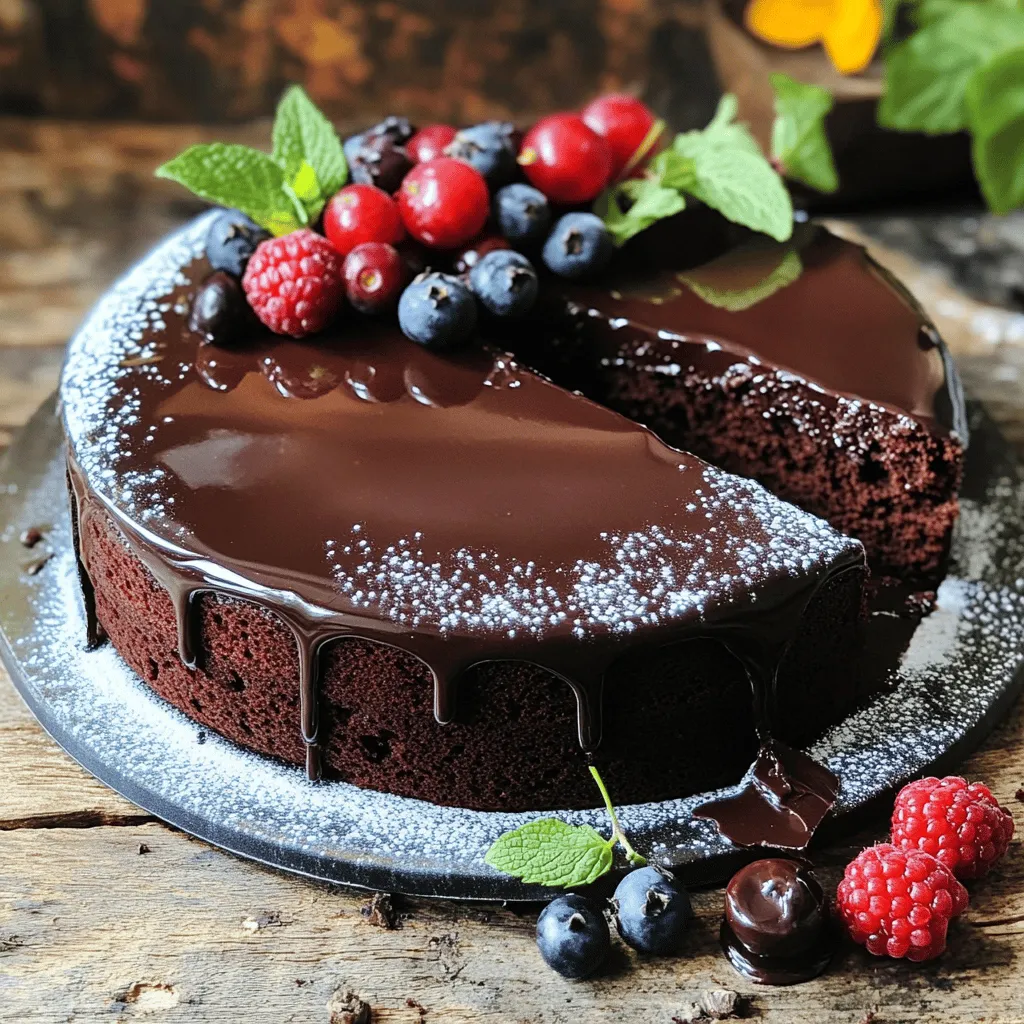 To create a rich vegan chocolate cake, you’ll need these key ingredients: - 1 ½ cups all-purpose flour - 1 cup granulated sugar - 1/3 cup unsweetened cocoa powder - 1 tsp baking soda - ½ tsp salt - 1/3 cup unsweetened applesauce - 1 cup non-dairy milk (almond, soy, or oat) - 1/3 cup vegetable oil (or melted coconut oil) - 1 tsp vanilla extract - 1 tbsp apple cider vinegar - ½ cup vegan chocolate chips (optional) These ingredients come together to form a moist and flavorful cake. Each plays a vital role in achieving the perfect texture and taste. Sometimes, you might not have all the ingredients. Here are some easy swaps: - All-purpose flour: Use whole wheat flour for added fiber or gluten-free flour for a gluten-free version. - Granulated sugar: Coconut sugar or maple syrup can work well here. Just adjust the liquid in your recipe. - Unsweetened applesauce: Mashed banana or silken tofu can provide similar moisture. - Non-dairy milk: Any plant milk will work, but coconut milk adds richness. - Vegetable oil: Use melted vegan butter or applesauce for less fat. These substitutions keep the cake vegan while allowing for flexibility based on what you have on hand. When making your vegan chocolate cake, select the best ingredients for a delightful outcome: - Flour: Choose unbleached, organic flour for better taste and texture. - Cocoa powder: Opt for high-quality, unsweetened cocoa to enhance the chocolate flavor. - Sugar: Make sure the sugar is vegan, as some brands use bone char in processing. - Non-dairy milk: Select brands without added sugars or preservatives for a cleaner flavor. - Vegan chocolate chips: Look for brands that use fair trade chocolate for ethical choices. These tips help improve the overall quality of your cake, making it a truly decadent treat. For the complete recipe, check out the Full Recipe section. 1. Preheat your oven to 350°F (175°C). This warms the oven for baking. 2. Grease and flour a 9-inch round cake pan. You can also line it with parchment paper. This helps the cake come out easily. 3. Sift together the dry ingredients. In a large bowl, mix 1 ½ cups all-purpose flour, 1 cup sugar, 1/3 cup cocoa powder, 1 tsp baking soda, and ½ tsp salt. Whisk until they blend. 4. Combine the wet ingredients in another bowl. Mix 1/3 cup applesauce, 1 cup non-dairy milk, 1/3 cup vegetable oil, 1 tsp vanilla extract, and 1 tbsp apple cider vinegar. Whisk until smooth. 5. Mix wet and dry ingredients together. Pour the wet mix into the dry mix. Stir gently until just combined. Don’t over-mix! If you like, fold in ½ cup vegan chocolate chips for more chocolate flavor. 6. Pour the batter into the prepared cake pan. Use a spatula to smooth the top. 7. Bake for 30-35 minutes. Check if it’s done by inserting a toothpick into the center. If it comes out clean, it’s ready. 8. Cool the cake in the pan for 10 minutes. Then, transfer it to a wire rack to cool completely. 9. Frost or serve the cake. You can add your favorite vegan chocolate frosting or dust it with powdered sugar. For a nice touch, serve slices on plates with fresh berries and mint. Drizzle with chocolate sauce for an extra treat. Try this full recipe for a rich, vegan chocolate cake that everyone will enjoy! To keep your vegan chocolate cake moist and fluffy, use fresh ingredients. Check the expiration dates on your baking soda and non-dairy milk. Applesauce adds moisture and helps with the cake's texture. Mix the wet and dry ingredients until just combined. Over-mixing can lead to a dense cake. Adding a bit of extra non-dairy milk can also help if your batter looks too thick. One common mistake is not preheating the oven. Always ensure your oven is ready before baking. Use the right size pan; a 9-inch round pan works best for this recipe. If you use a different size, adjust the baking time. Remember to check the cake a few minutes before the timer goes off. Each oven is unique. Lastly, let the cake cool in the pan for ten minutes. This helps it stay intact when you transfer it. To enhance the flavor of your cake, try adding a splash of coffee. It deepens the chocolate taste without making it taste like coffee. You can also use flavored extracts, like almond or orange. For a fun twist, fold in some nuts or dried fruit. If you love chocolate, add vegan chocolate chips for extra richness. Use high-quality cocoa powder; it makes a big difference in taste. For the full recipe, check the sections above. {{image_2}} You can make this cake gluten-free. Just swap all-purpose flour for gluten-free flour. Use a blend that contains xanthan gum for best results. This will help the cake rise nicely. Follow the same steps in the full recipe. You’ll still enjoy a moist and rich cake. Want to jazz up the flavor? Add mint extract or coffee. For mint, use about 1 teaspoon in the wet mix. For coffee, brew a strong cup and replace some non-dairy milk with it. Both options give your cake a unique twist. Experiment to find your favorite! You can easily turn this cake into a layered dessert. Bake two or three rounds instead of one. Stack them with vegan frosting between each layer. This makes for a stunning presentation. You can also fill the layers with fruit or a chocolate ganache. The choices are endless! To keep your vegan chocolate cake fresh, store it in an airtight container. This helps keep moisture in and prevents the cake from drying out. If you have leftover slices, place parchment paper between them. This prevents sticking and keeps each piece intact. You can freeze your vegan chocolate cake for later enjoyment. First, let the cake cool completely. Wrap it tightly in plastic wrap. Then, place it in a freezer-safe bag. This protects it from freezer burn and keeps it fresh. When you’re ready to eat, thaw it in the fridge overnight before serving. The cake stays fresh at room temperature for about 3 days. If you store it in the fridge, it can last up to a week. To check for freshness, look for any changes in texture or