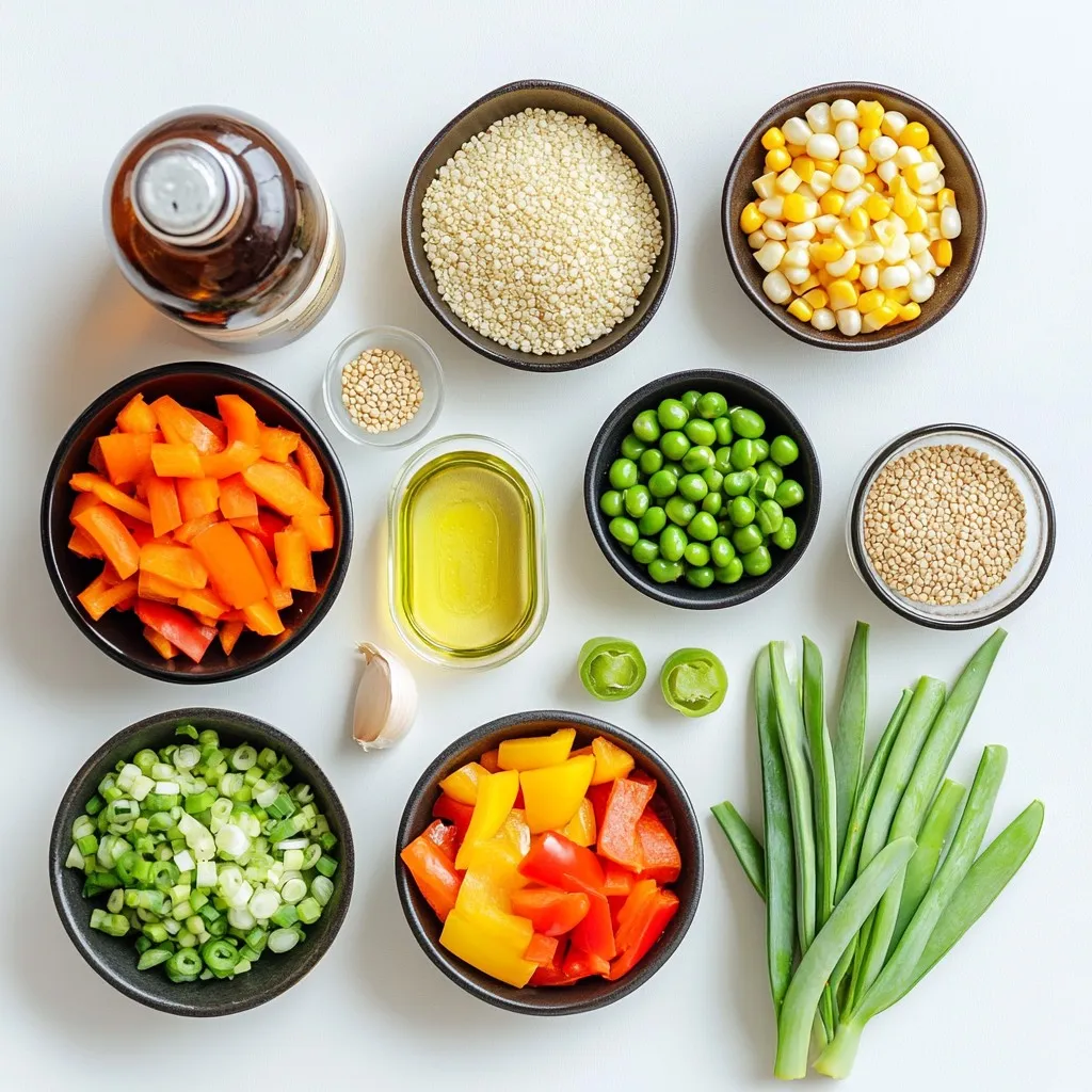 To make veggie loaded quinoa fried rice, gather these key ingredients: