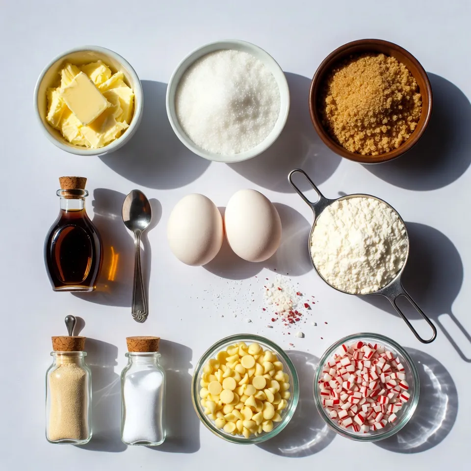 To make these tasty White Chocolate Peppermint Cookies, you need some simple ingredients. Gather these items before you start baking: